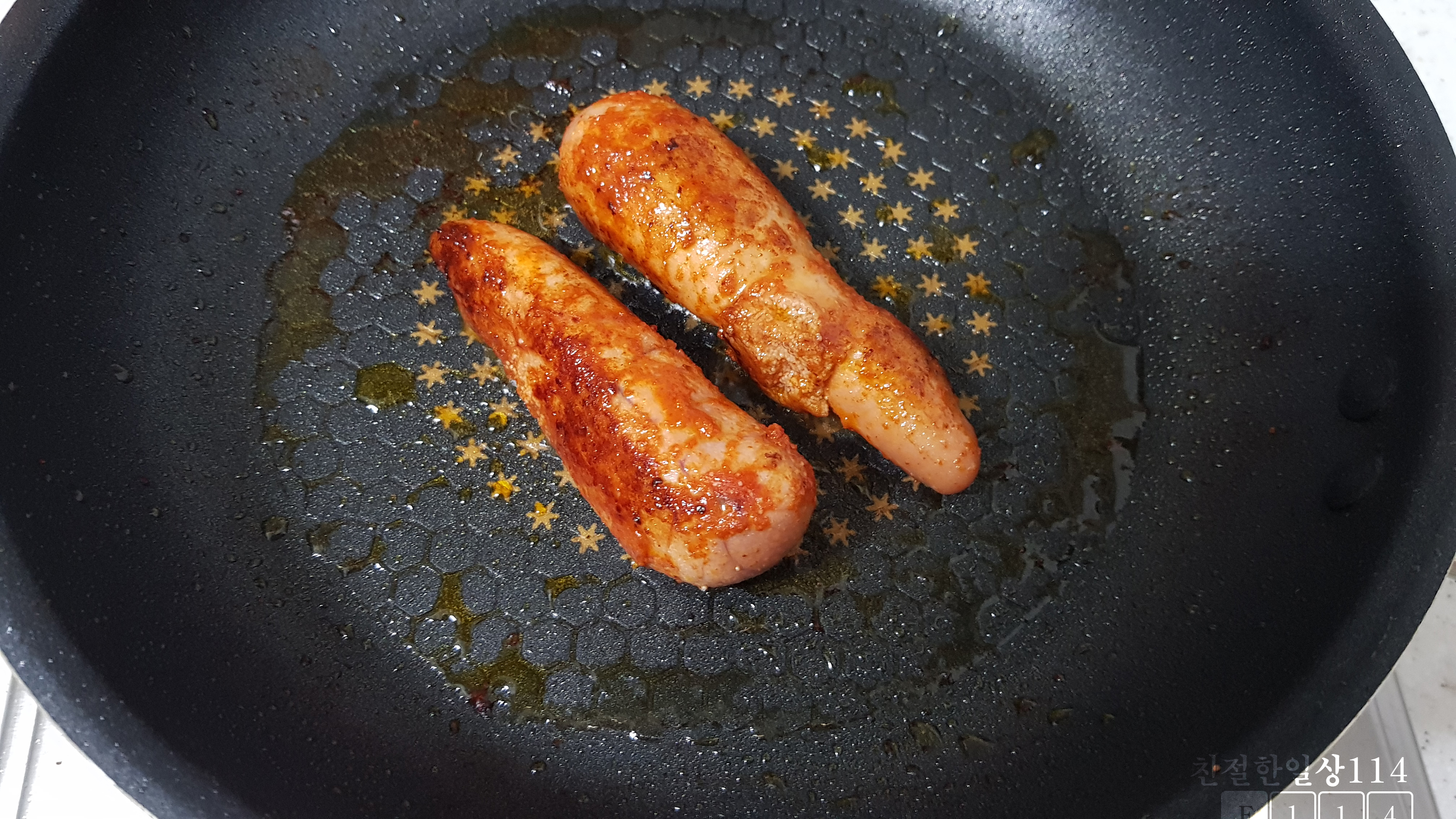냉동실에 썰어둔 청량고추를 같이 먹으면 한국식 불맛을 느낄 수 있다.