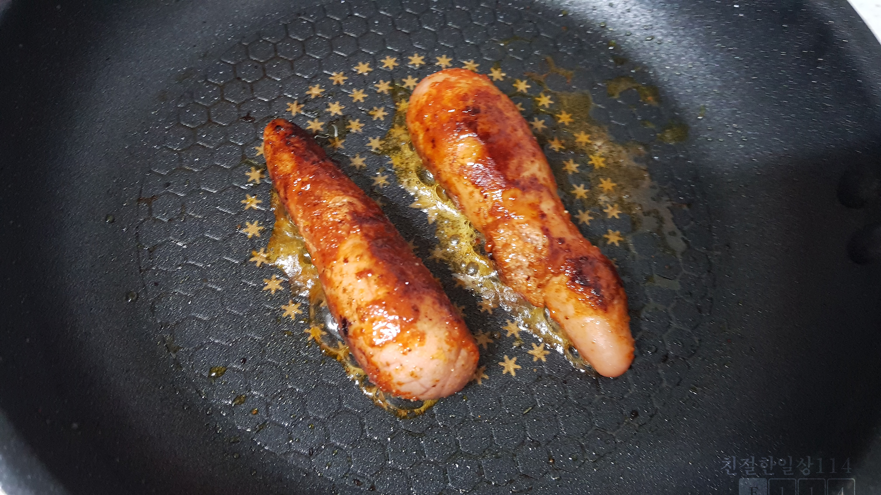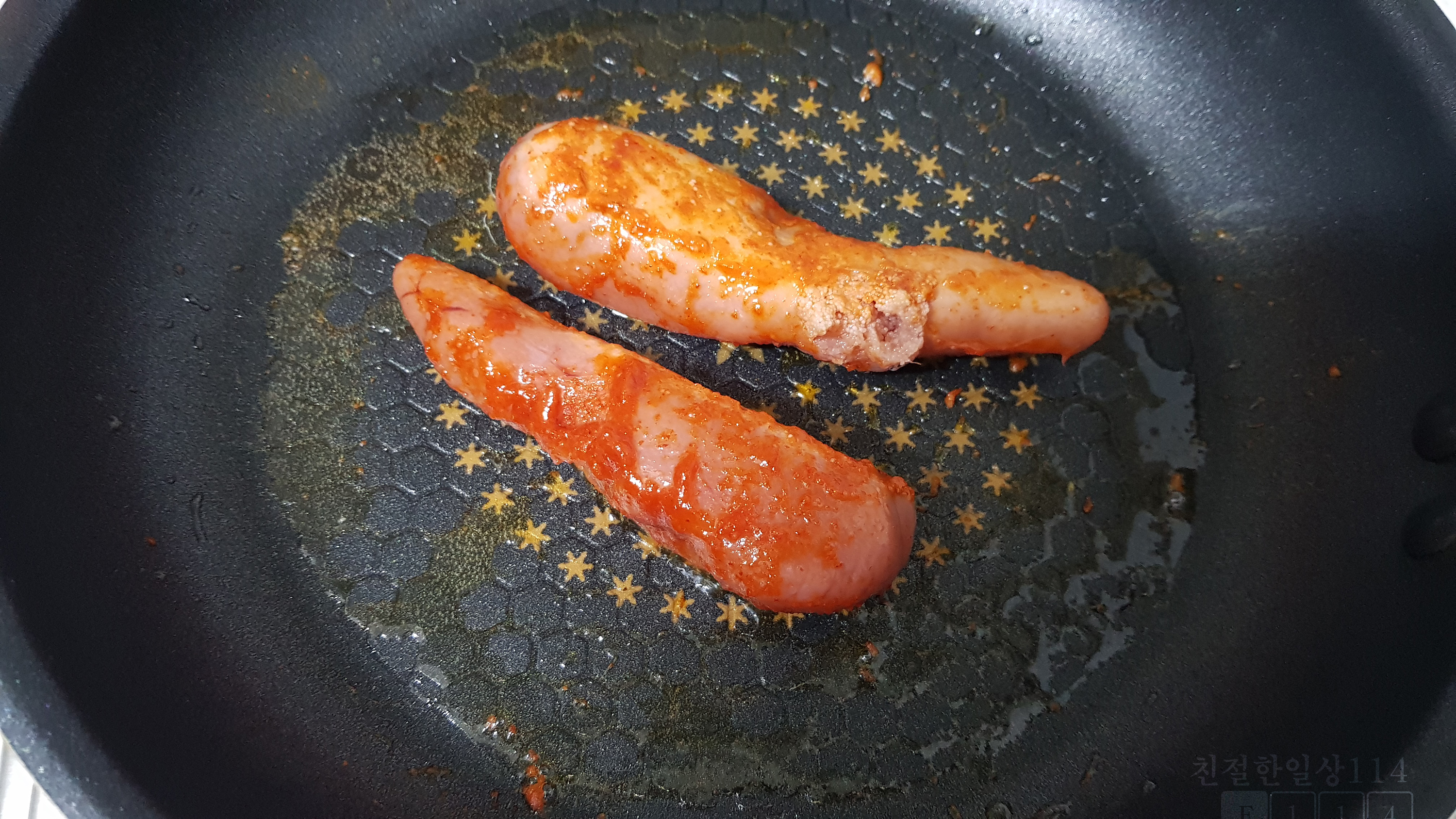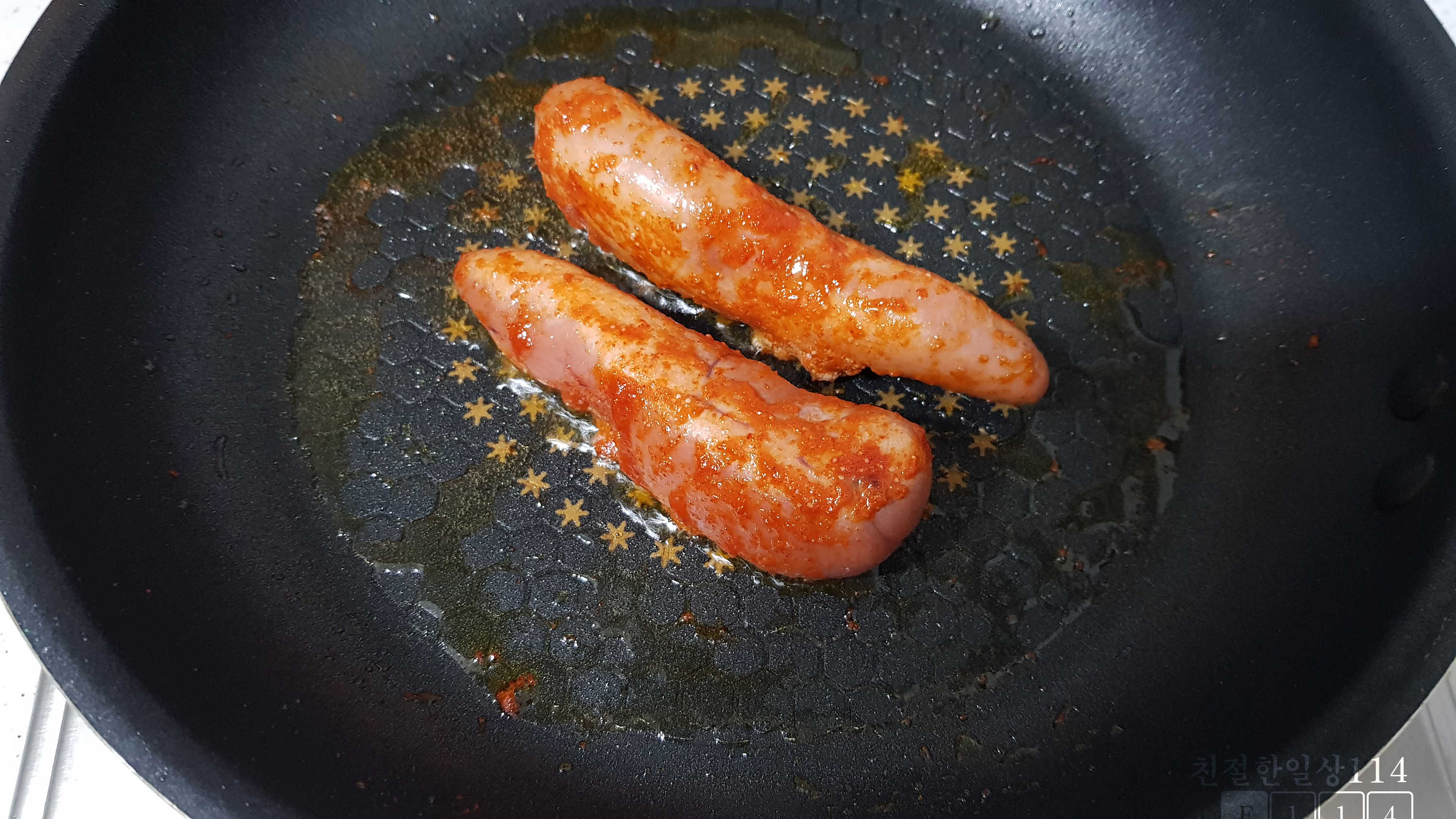 소스는 마요네즈와 겨자소스로 만든다. 필자는 매운걸 좋아해서 톡쏘는 겨자의 매운 맛이 아닌 한국식 매운맛을 추가하려고 냉동실에 있는 청양고추도 넣는다.