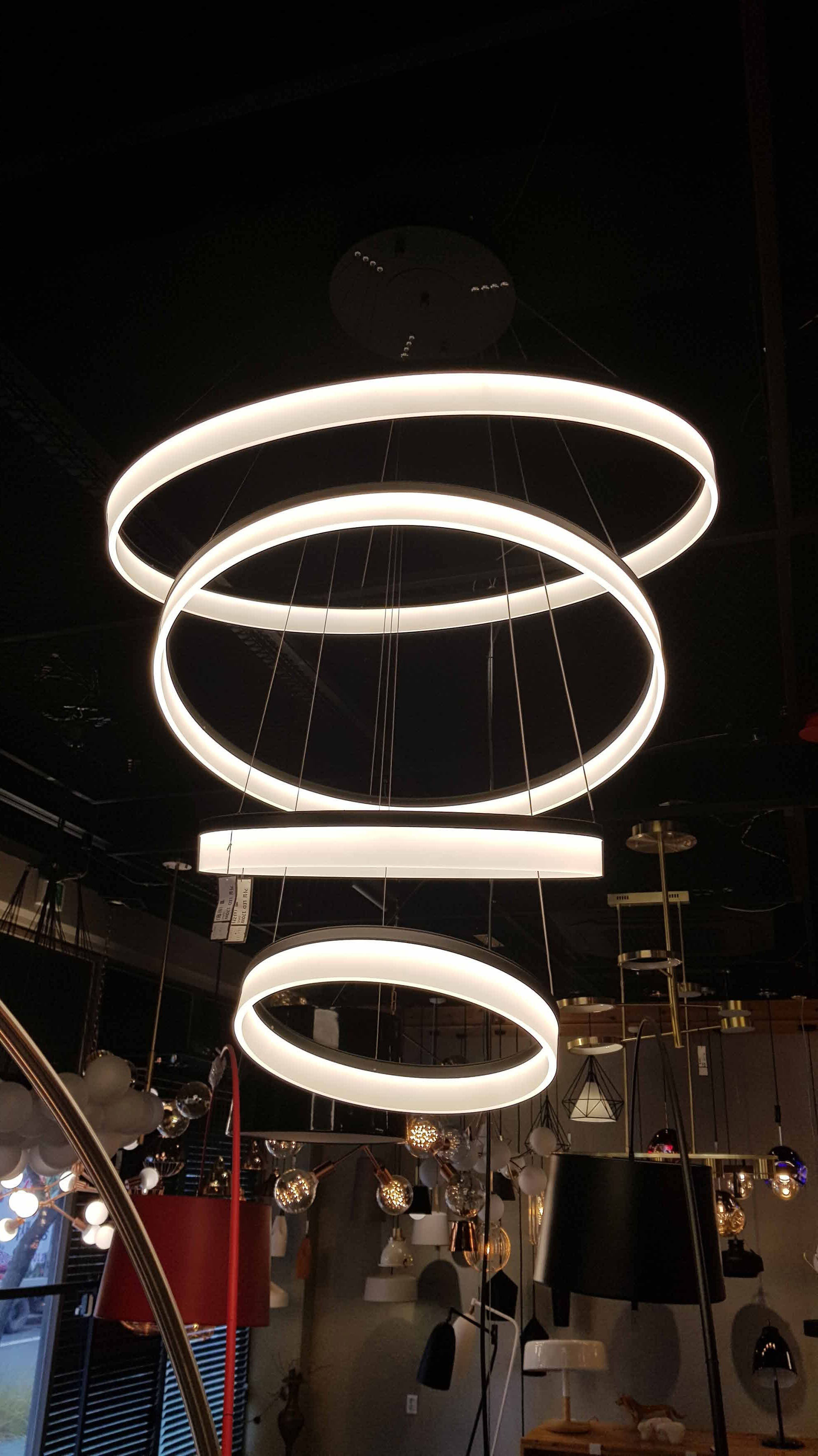 그렇게해서 구입하게 된 고리모양의 펜던트형 LED 조명으로 호텔이나 갤러리와 같이 실내가 넓은 곳에서 볼 수 있는 조명이다