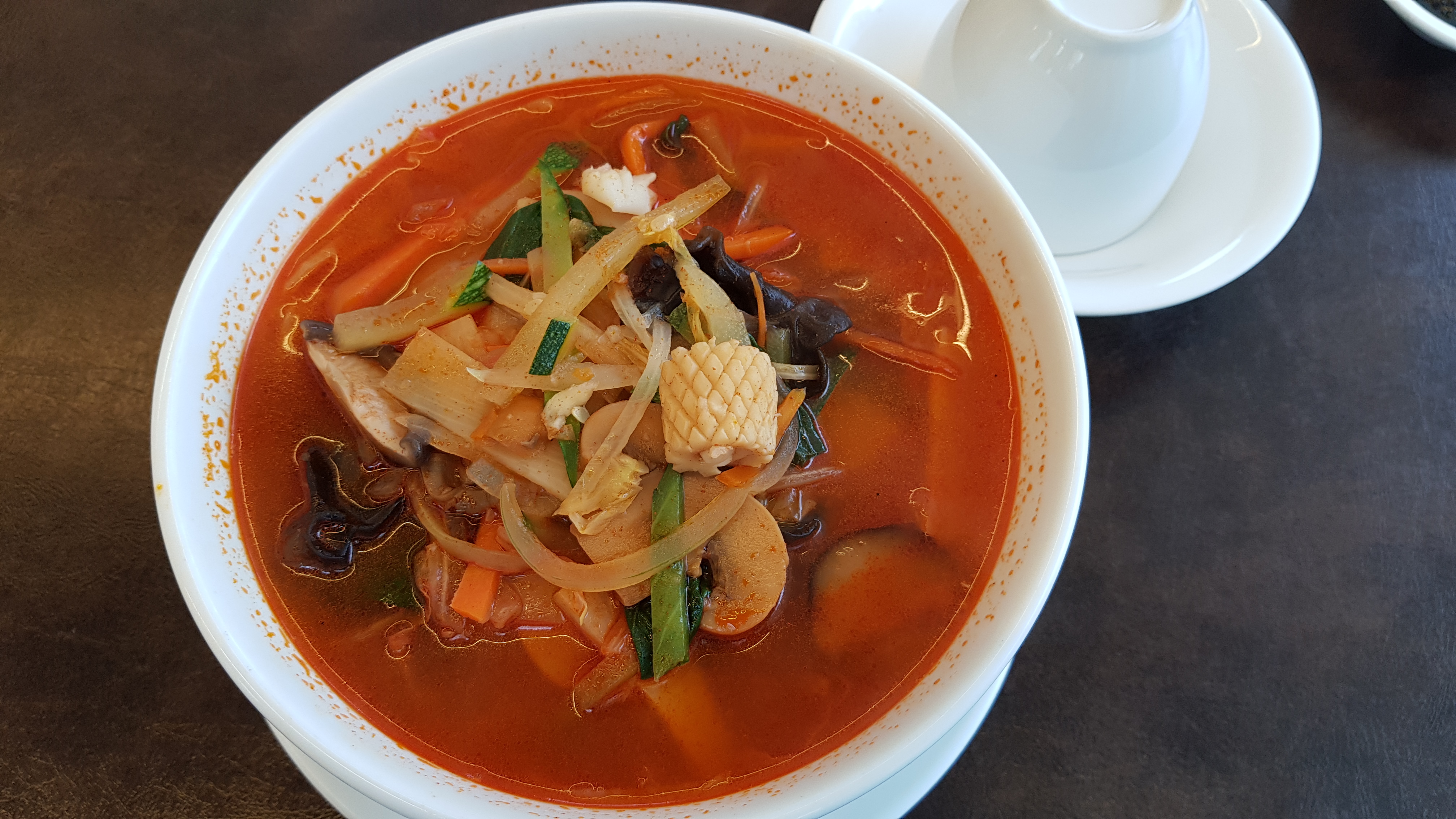이것을 먹기 위해 왔다. 용문에 들리는 이유인 짬뽕. 용문 짬뽕은 여타 짬뽕과 달리 홍합대신 다른 해산물과 버섯으로 시원함과 담백함을 낸다. 이런 이유에선지 국물을 수저로 떠먹으면 한번에 그치지 않고 연거푸 대여섯 수저는 떠마신 후 면을 먹게 된다.  흐린날이라 세로토닌이 필요하다. 부탁한다 짬뽕아.