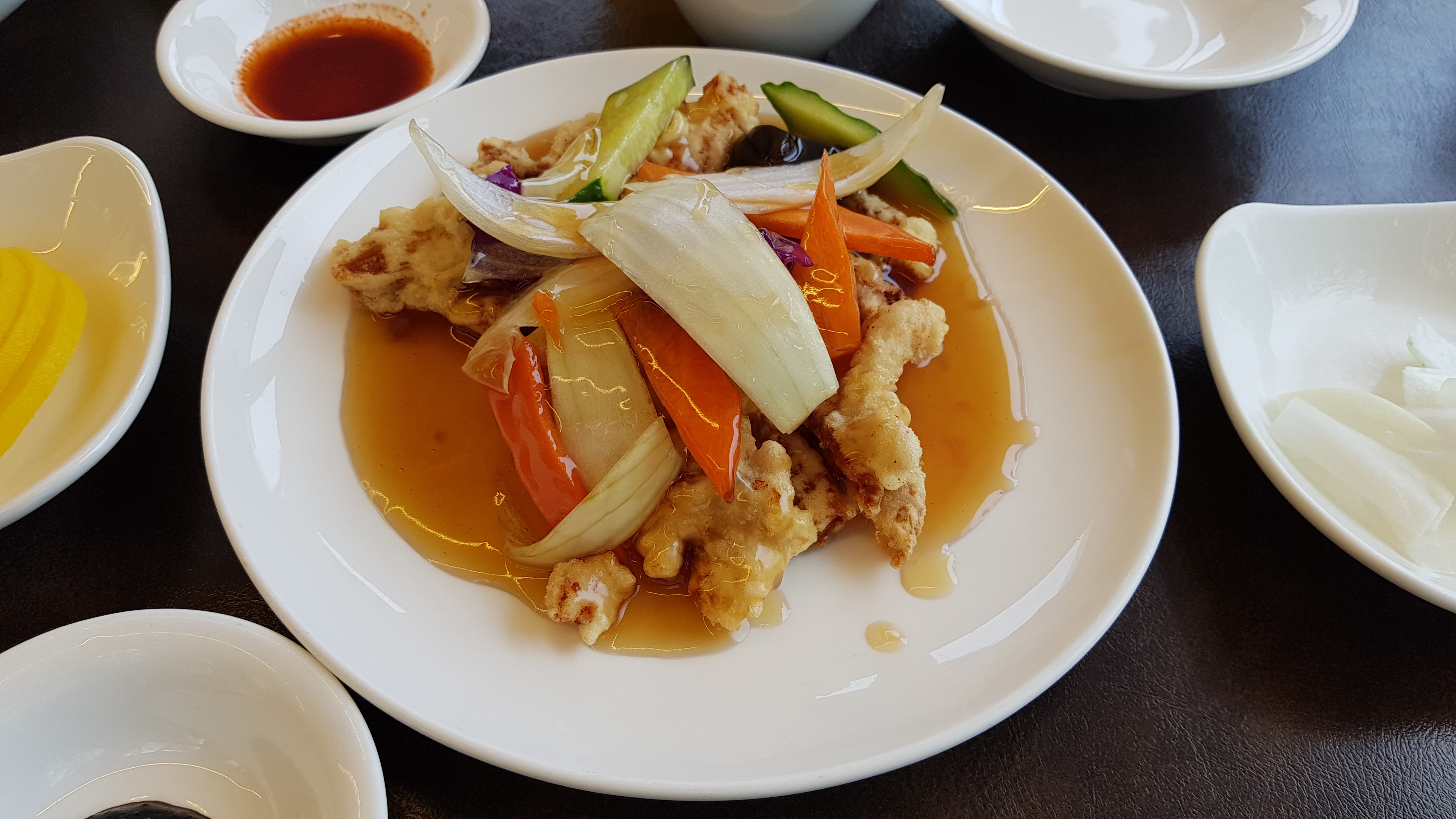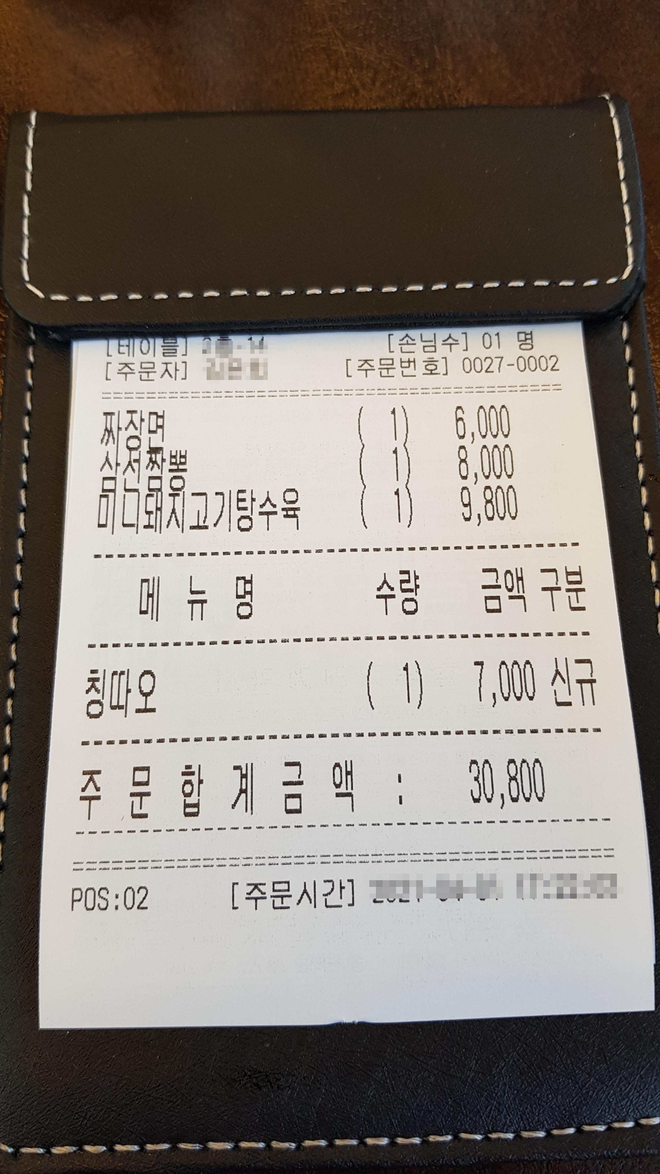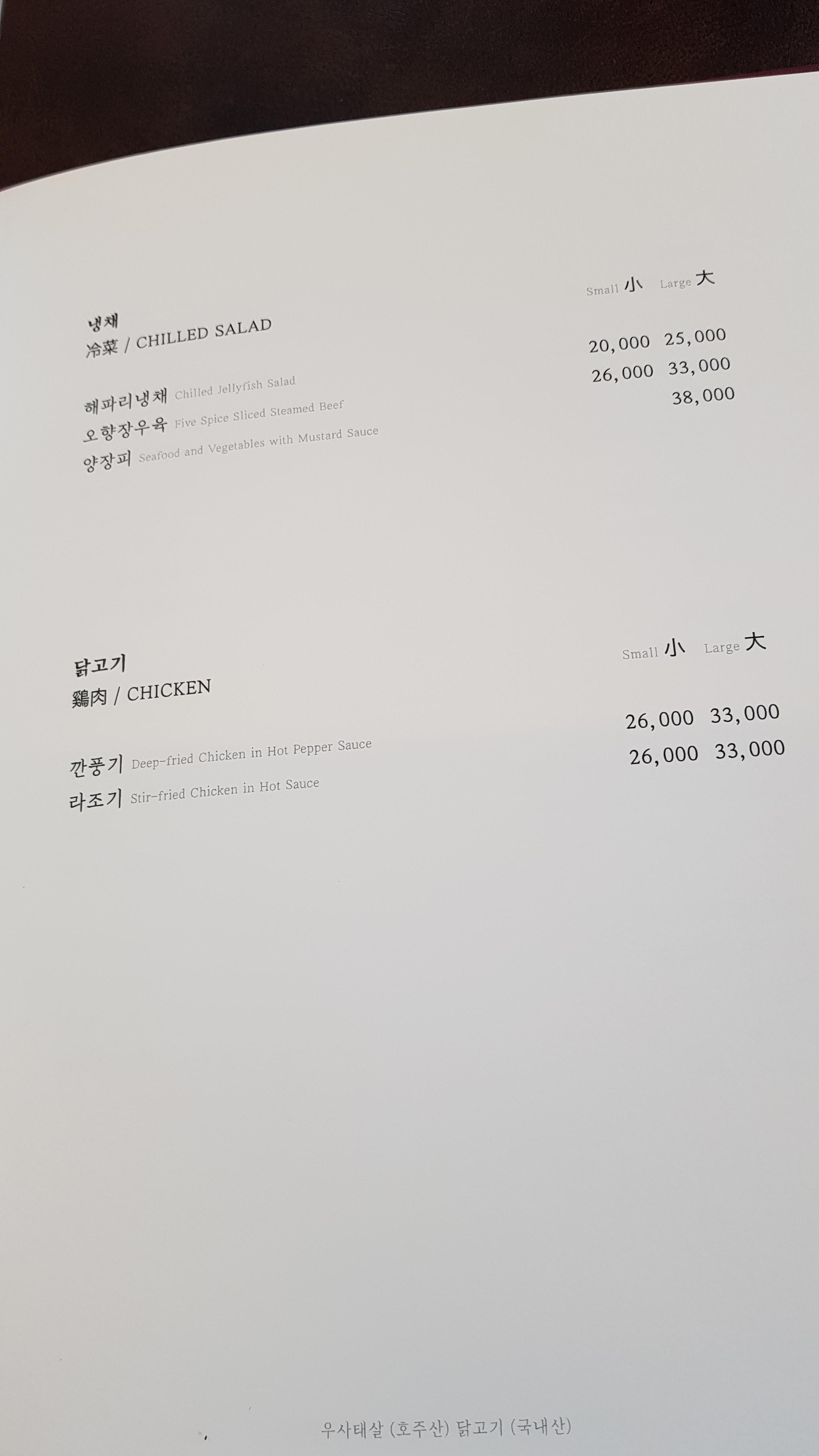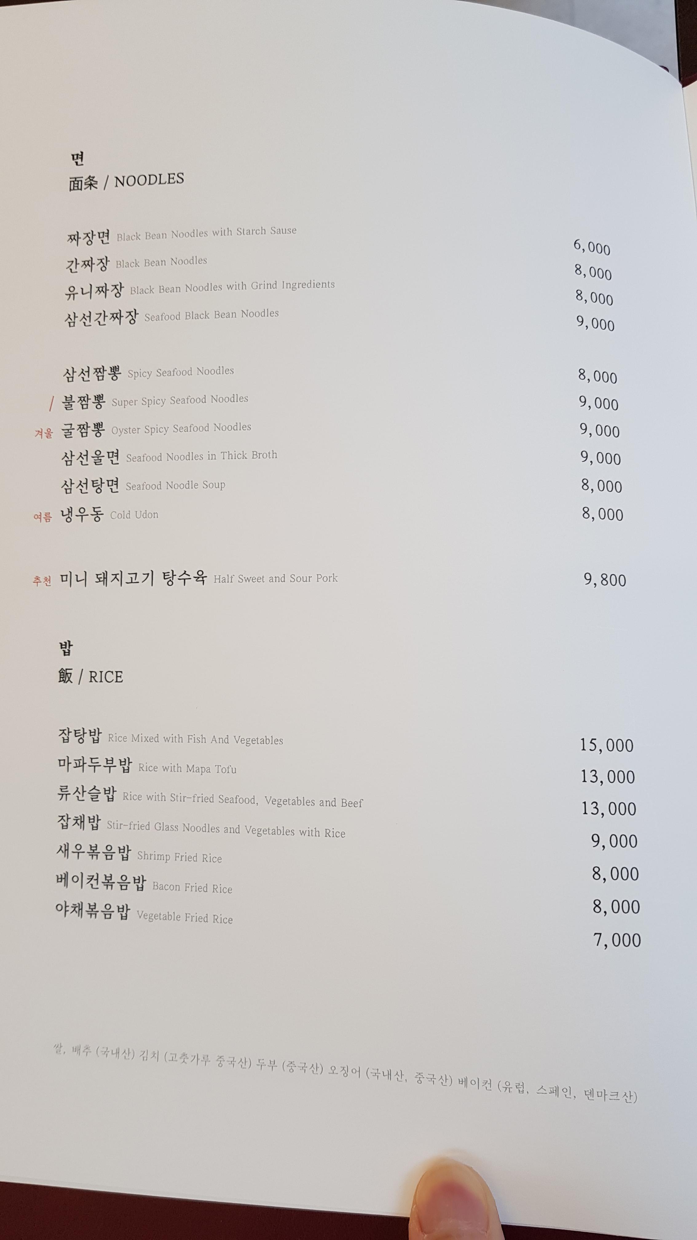 안쪽으로 들어가서 적당한 테이블에 앉아 메뉴판을 보고 메뉴를 고른다. 메뉴는 정해져있지만 이전 후 첫 방문이라 메뉴와 가격에 변화가 있었는지 보았다. 가격은 이전과 같았으며 즐겨먹던 탕수육에서 미니탕수육이라는 더욱 작은 사이즈가 생겨서 반가웠다,
