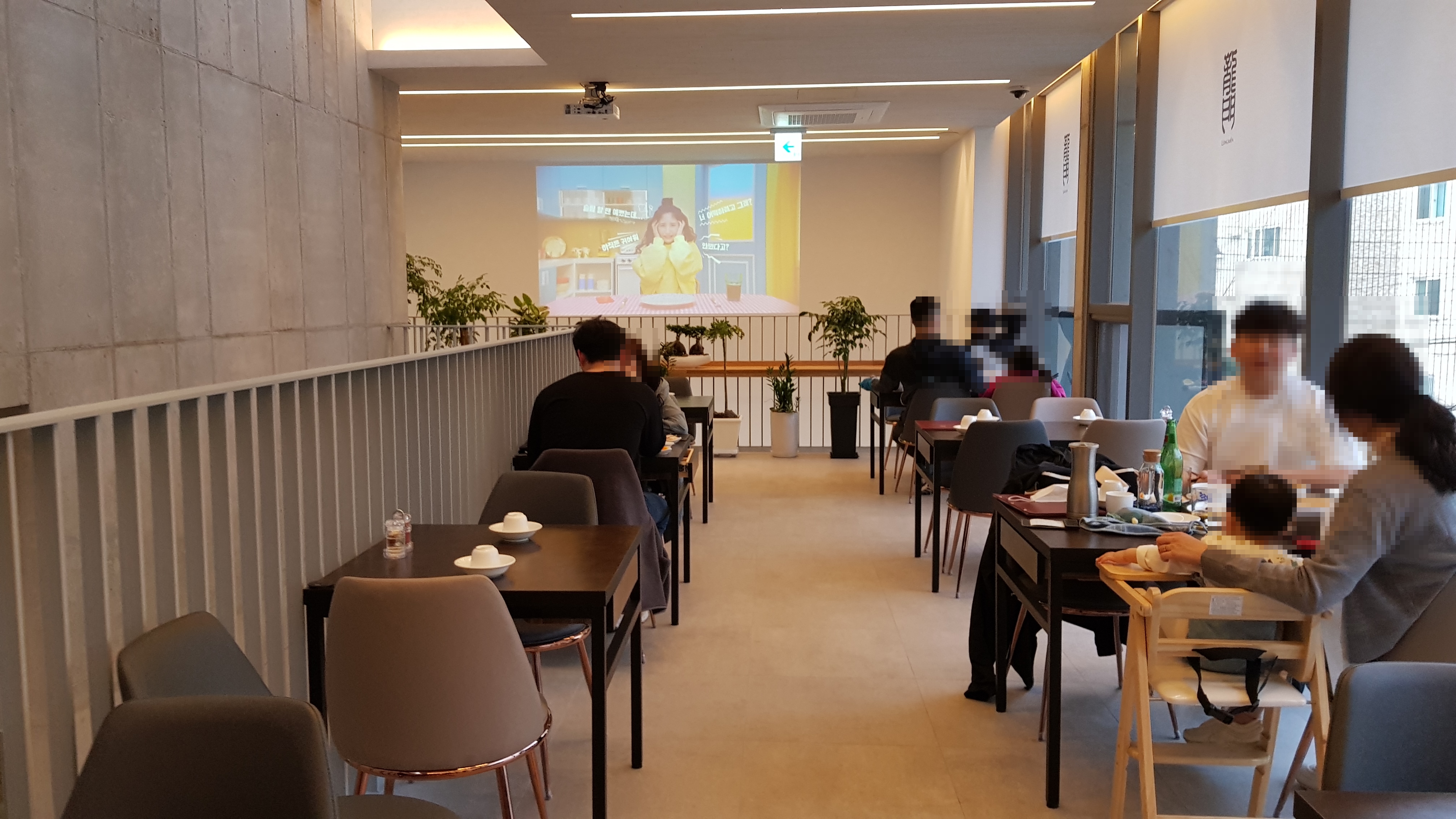 2층 홀 안쪽에서 바라본 내부. 테이블 수가 생각보다는 많지 않다. 5시가 조금 넘은 시간이지만 테이블이 절반정도는 차있다.