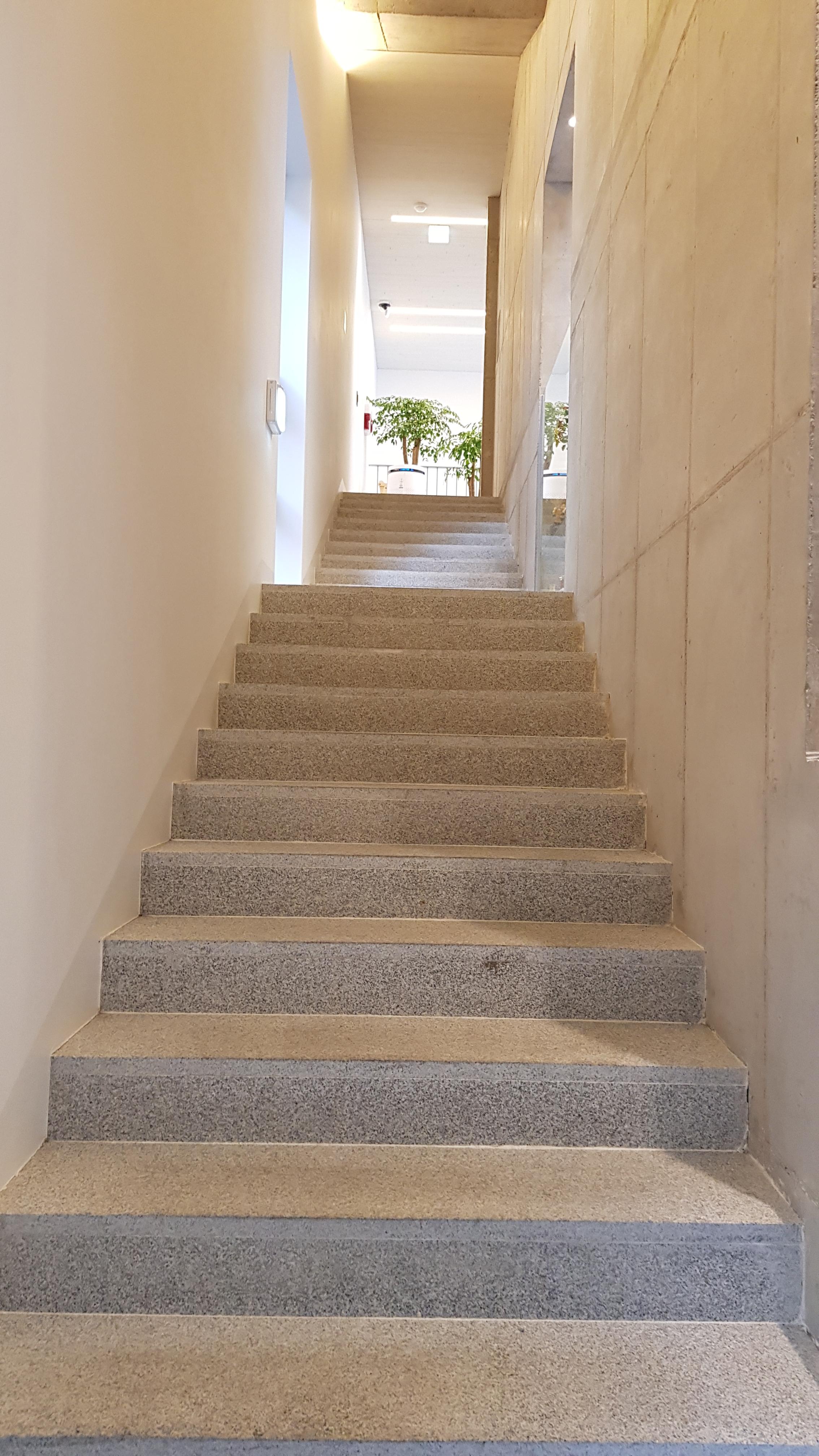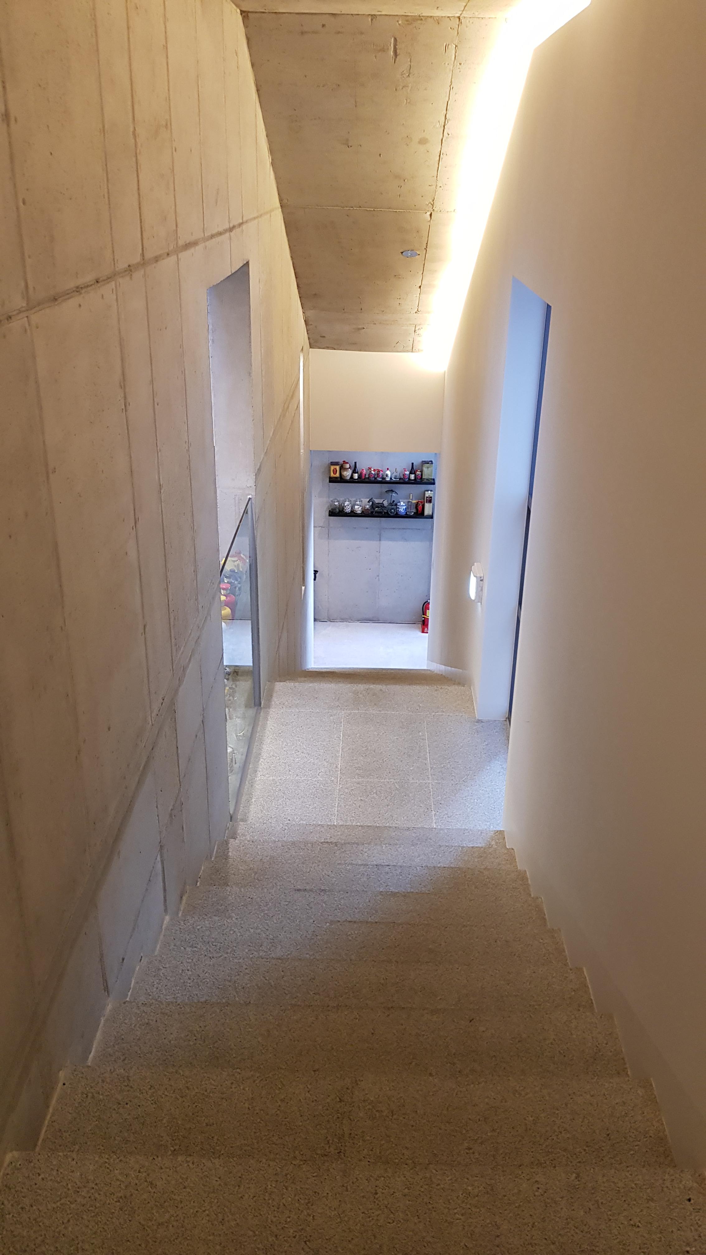 1층 통로끝에 이르면 나오는 2층으로 올라가는 계단. 엘레베이터는 따로 없으며 걸어올라가면 된다.