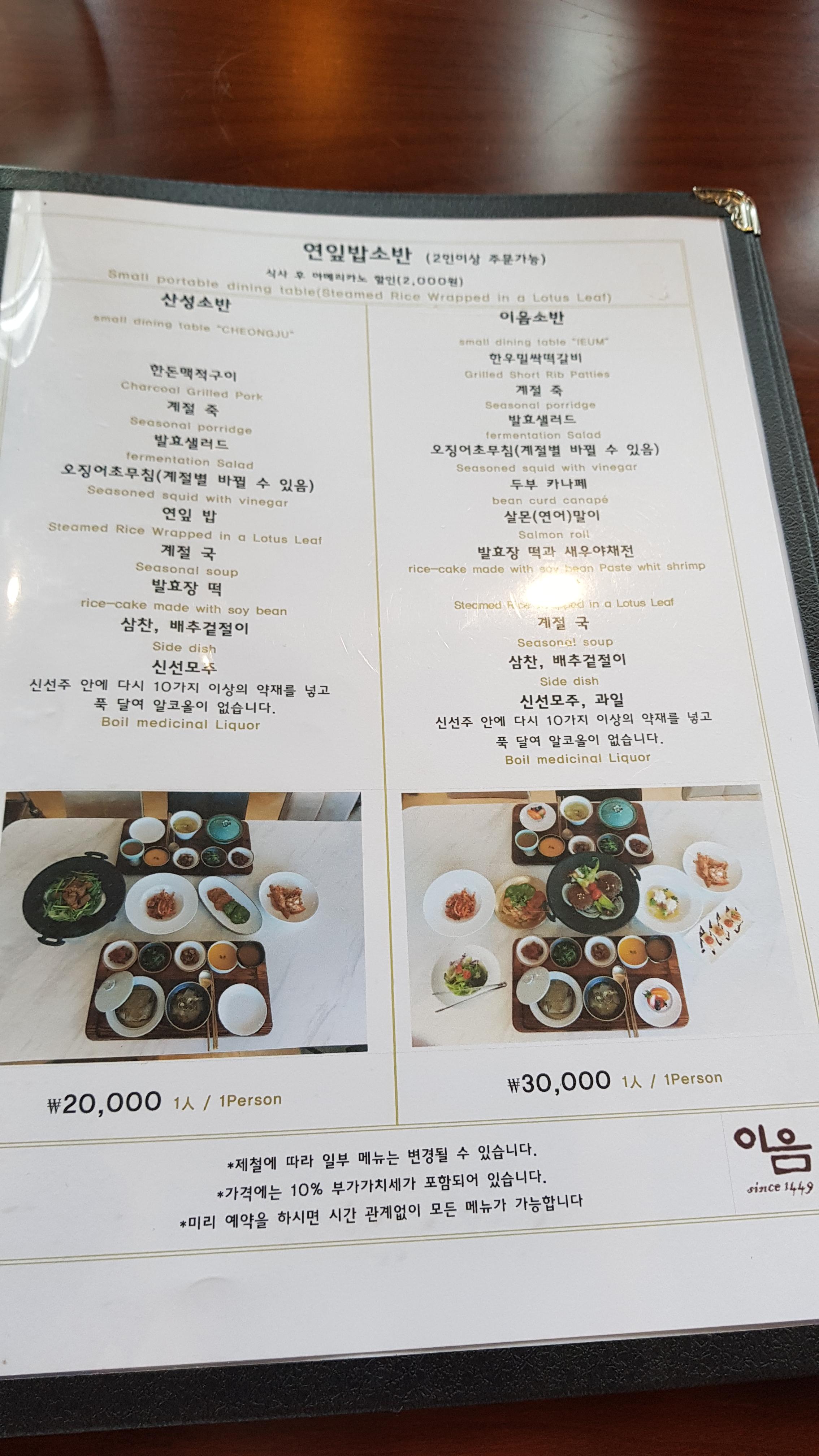 메뉴판은 테이블에 놓여있다. 엄마에게 연잎밥을 추천받아 메뉴는 이미 정해놓았지만 꺼내어 펼쳐본다.