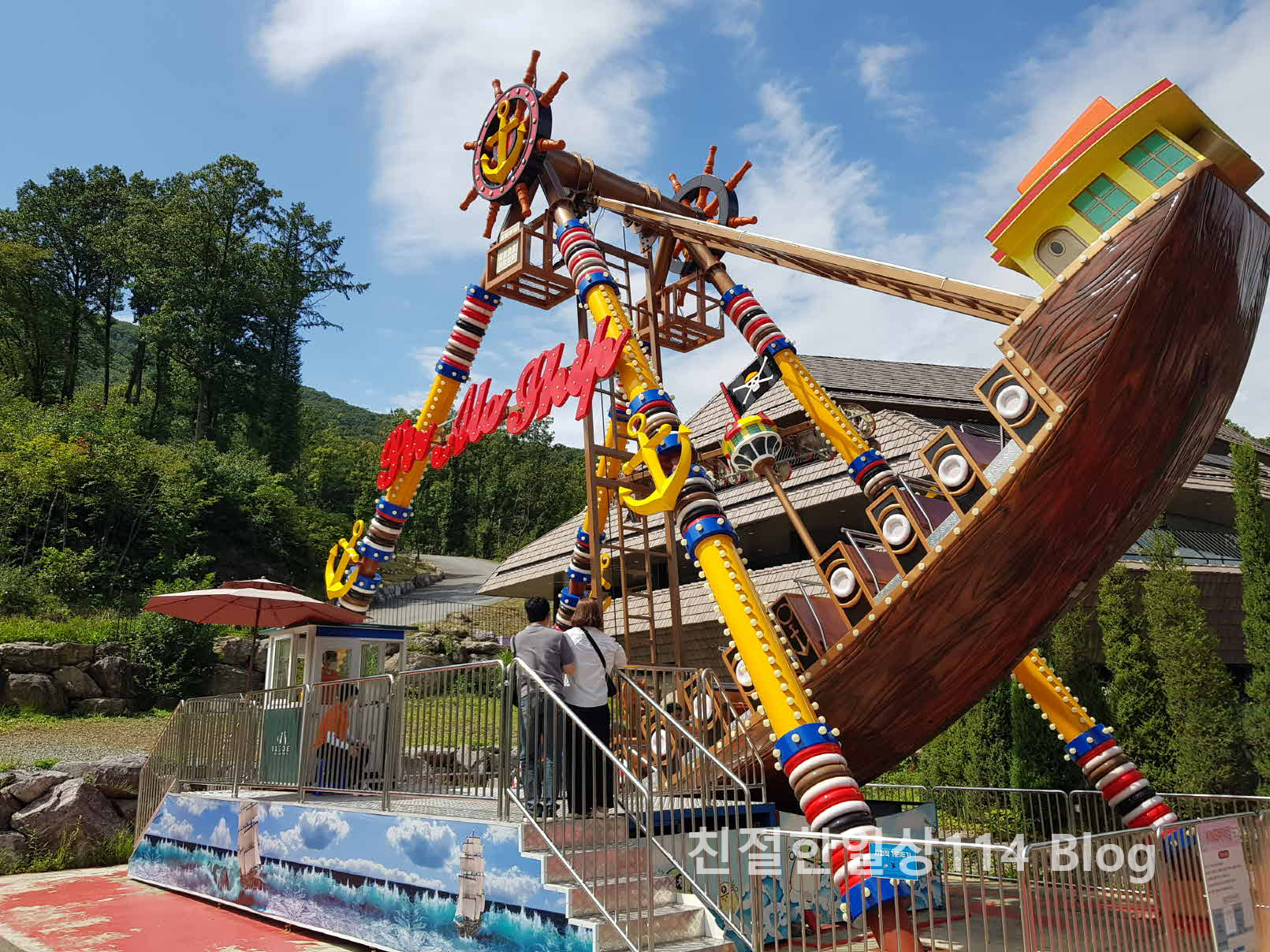 루지를 타러가는 도중에 있는 놀이기구인 바이킹. 루지를 타기전 놀이동산 Big3 이용권도 끊어서 바이킹과 다른 놀이기구도 이용해 본다.