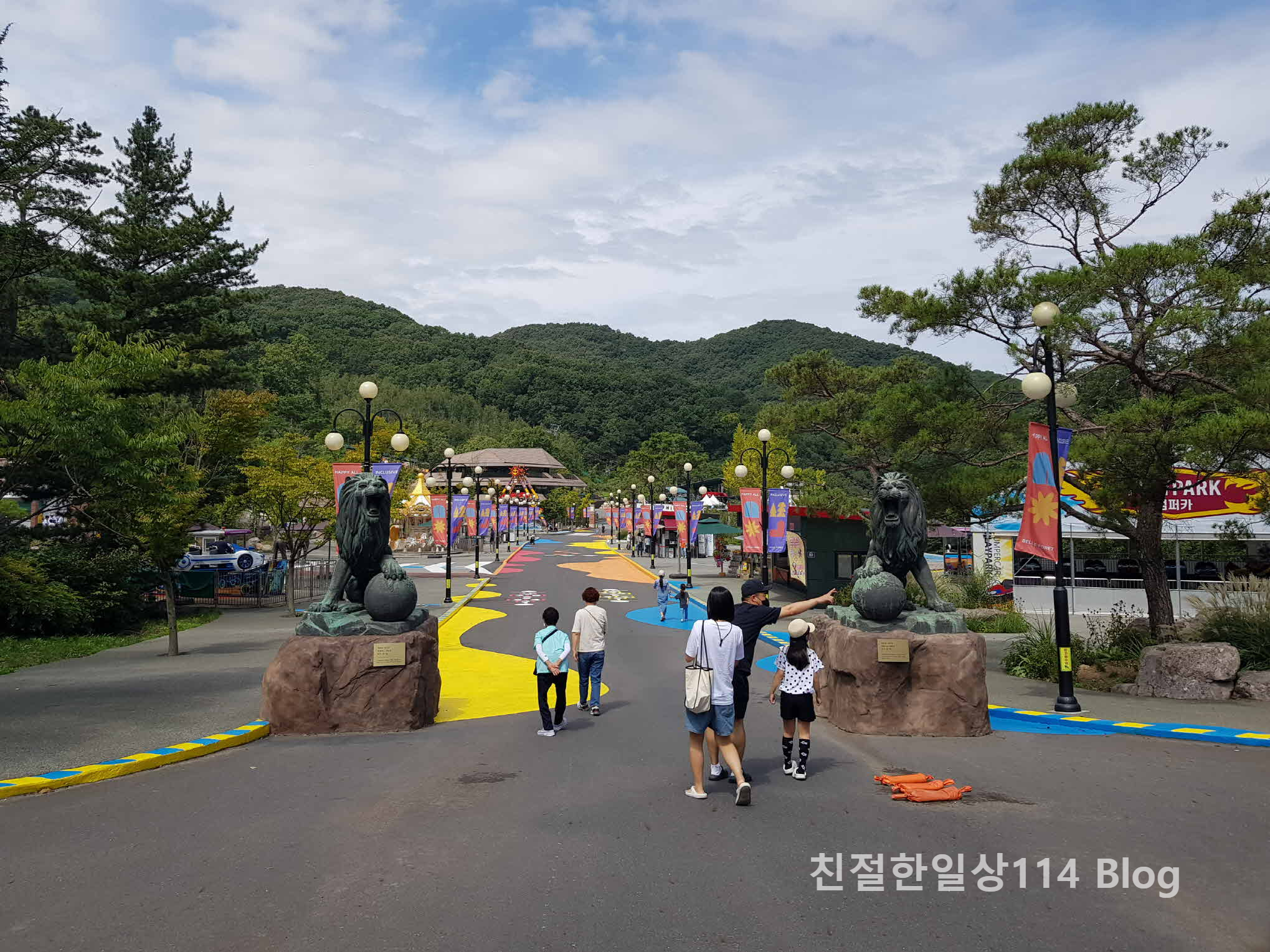 셔틀버스에서 하차해서 놀이동산으로 걸어들어 간다. 놀이동산은 어릴때나 어른이 되어서나 이렇게 걸어들어 갈때부터 신이난다.