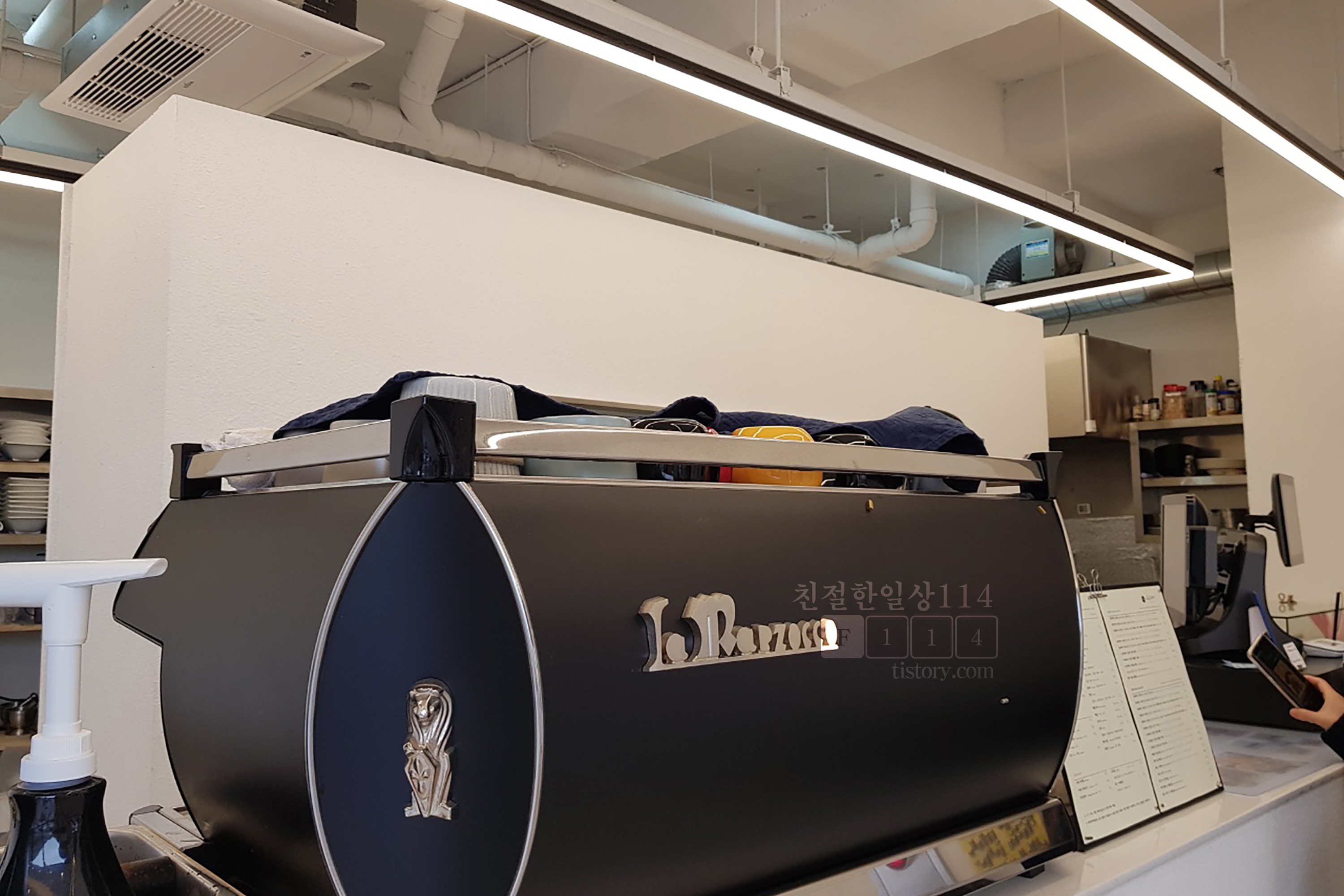 1층 커다란 통유리문을 열고 들어서면 카운터가 있다. 상당히 깔끔하다. 블랙 & 화이트로 꾸며져 있어 모던한 분위기이다.