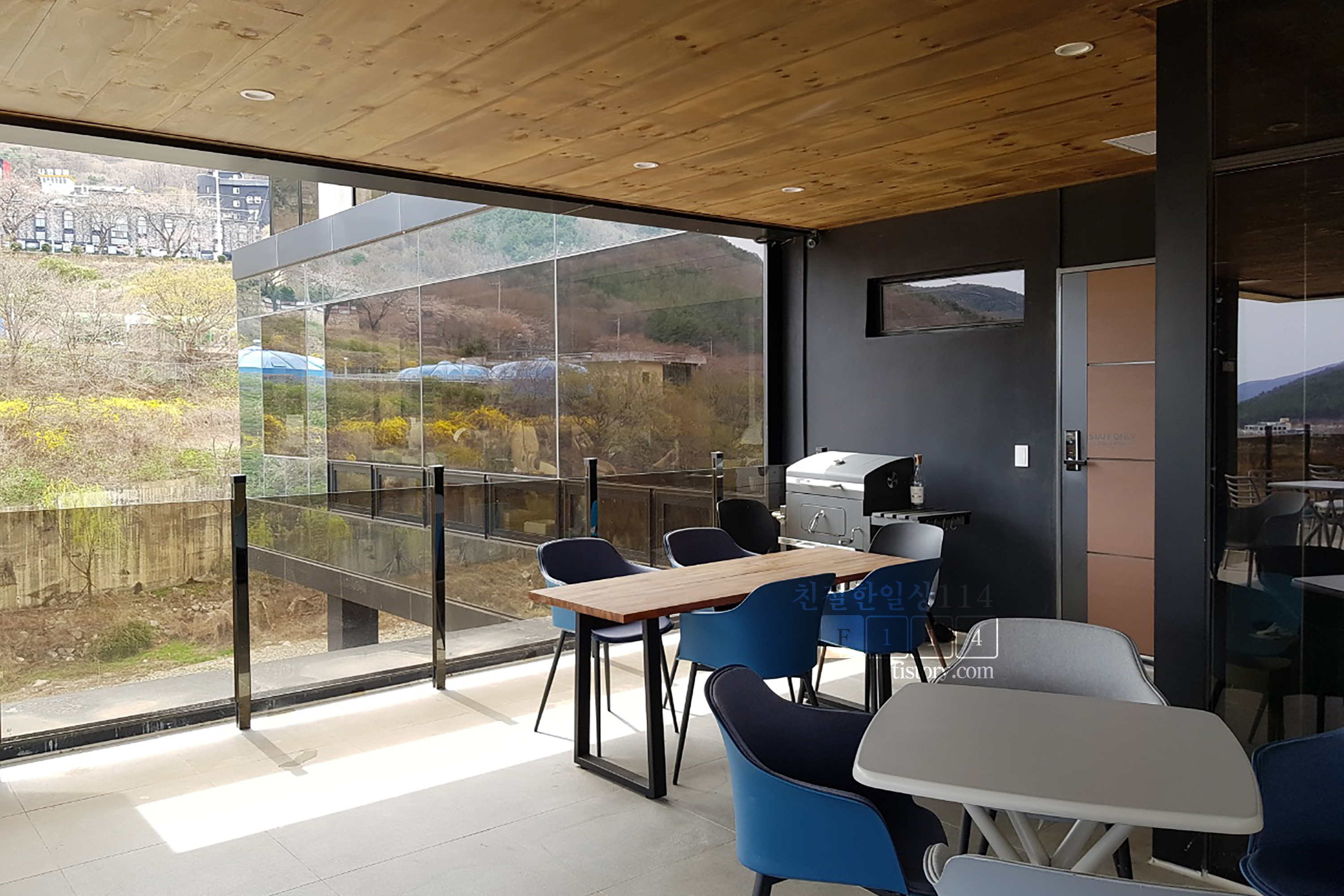 3층에는 테라스로 바비큐 그릴과 테이블이 마련되어있다. 날씨 좋은 날에는 이곳에서 경치를 구경하며 맥주마시기 좋을 것 같다. 단 맥주를 마시기전에 이곳을 빠져나갈 수 있는 방법을 먼저 생각하고 마셔야 겠다. (이곳까지 대리운전기사가 오는지는 모르겠다)