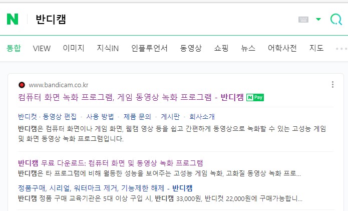 네이버에서 반디캠으로 검색하면 상단에 반디캠 홈페이지 링크가 나온다.