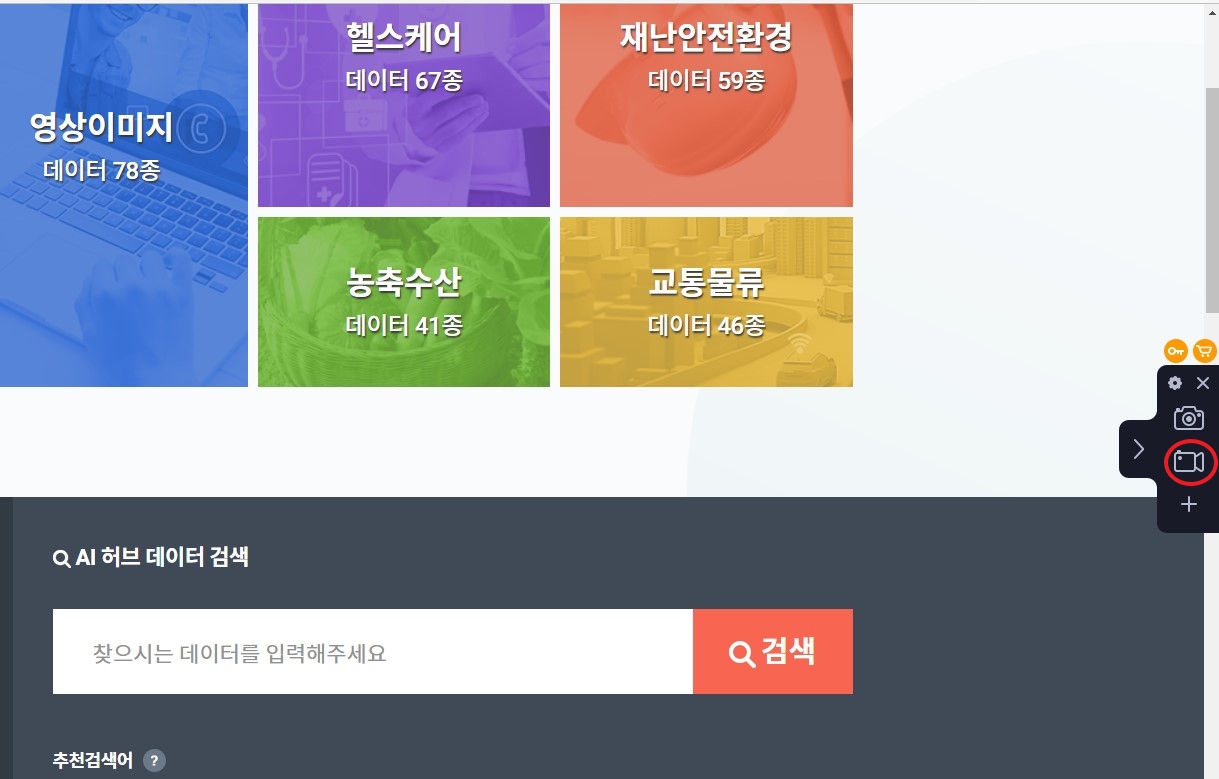동영상 버튼을 클릭하면 화면이 녹화된다.