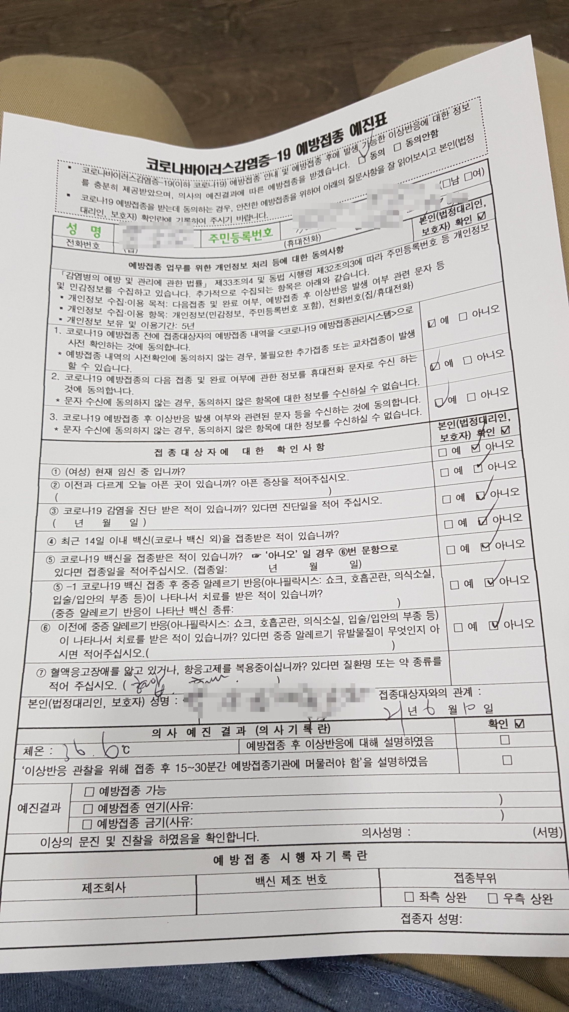 1차 접종 날짜를 사전 예약하며 자동으로 잡힌 2차 접종이 8월달에 있다. 그때도 미리 시간을 비워두고 모시고 다녀와야 겠다.