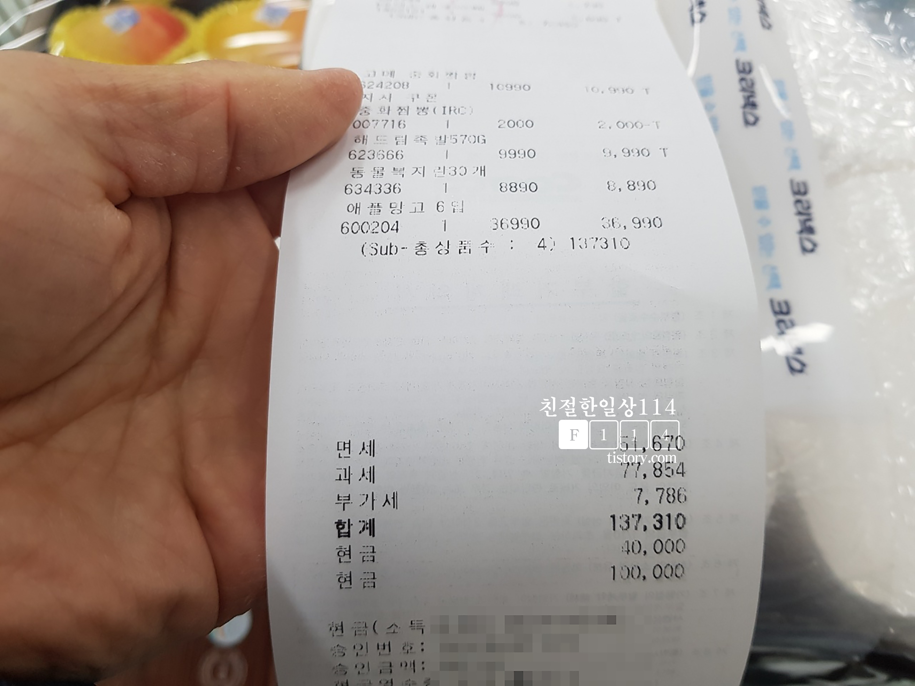 당일권을 발급받아 산 물건은 전부 14만원 정도. 당일권은 회원카드와 동일하게 계산하기전에 제시하고 일회용이기에 다시 돌려받지는 않는다.