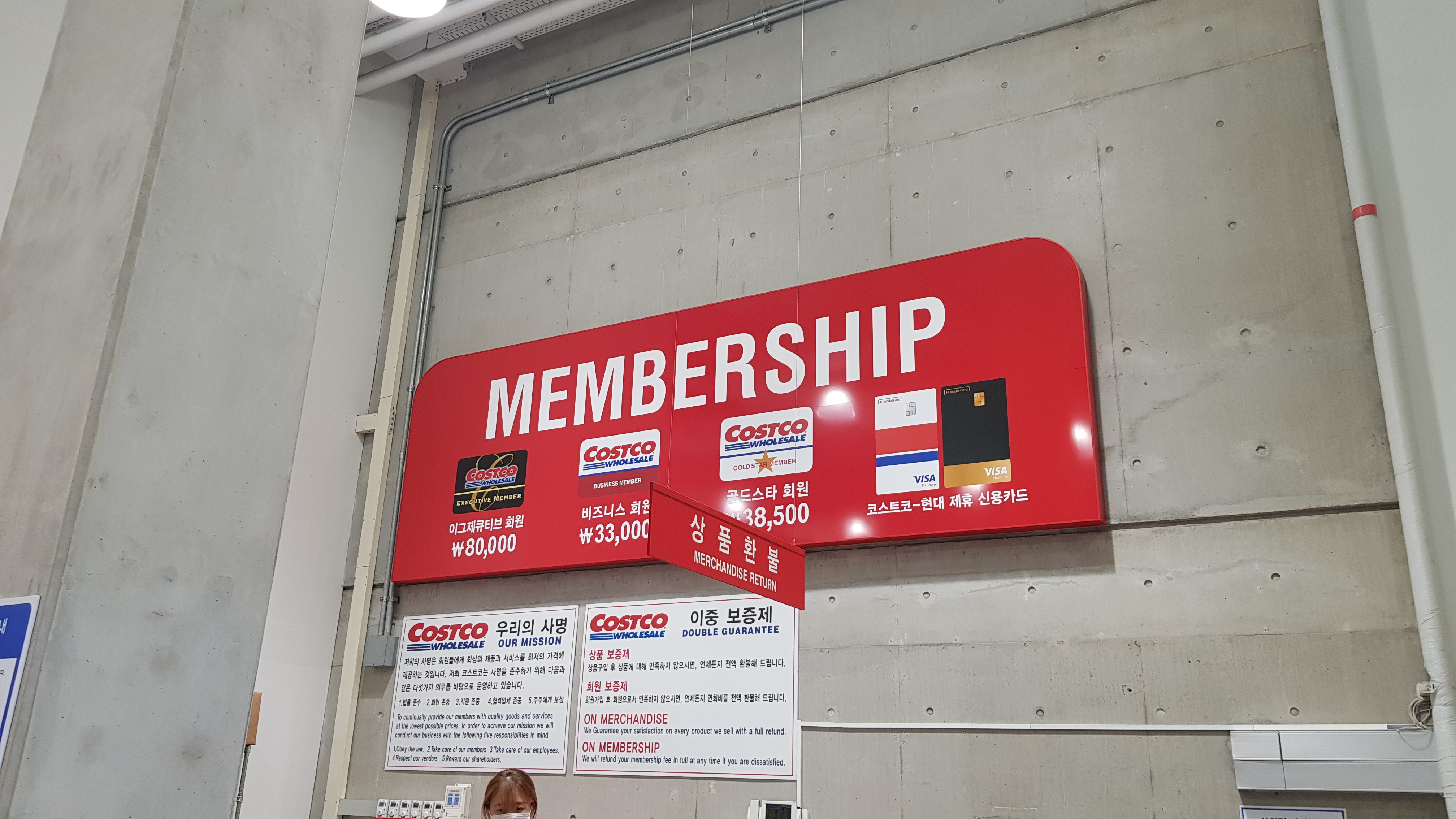주차장 가까이 있는 코스트코 직원에게 회원카드를 놓고 왔다 설명하니 당일권을 발급받으면 된다 알려주었으며 신규회원 가입하는 곳으로 가라고 안내해 준다.
