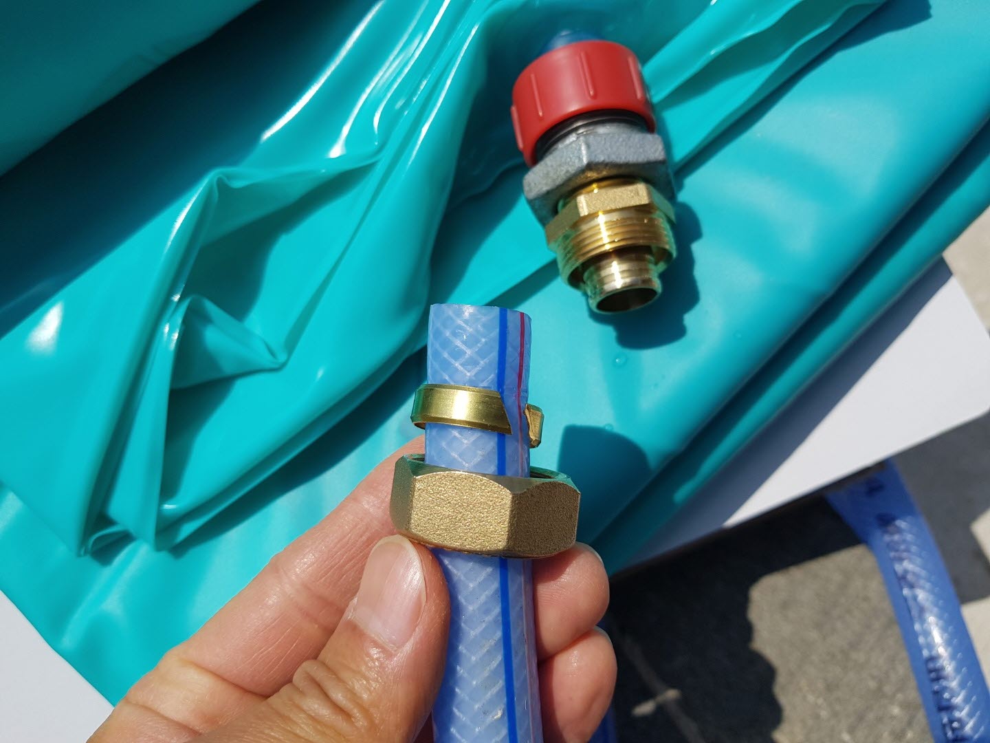집에 와서 박스를 뜯어 물건을 펼쳐보니 호스 연결하는 부분이 뭔가 심상치 않다. 호스도 갖다 대보고 이것저것 끼워보지만 바로 사용 할 수는 없었다. 호스를 패드에 연결 할 수 있는 장치가 별도로 필요했다.