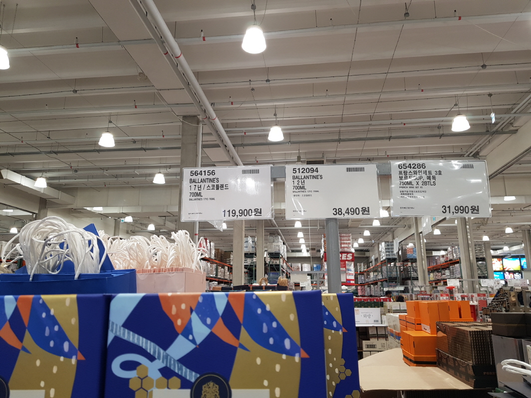 그동안 코스트코 주류 코너에는 맥주와 와인만 판매중인 것을 봤었는데 이번에는 추석 명절 때문인지 아니면 연말연시 선물용으로 준비를 해 놓은 것인지 양주와 전통주가 진열되어 있었다.