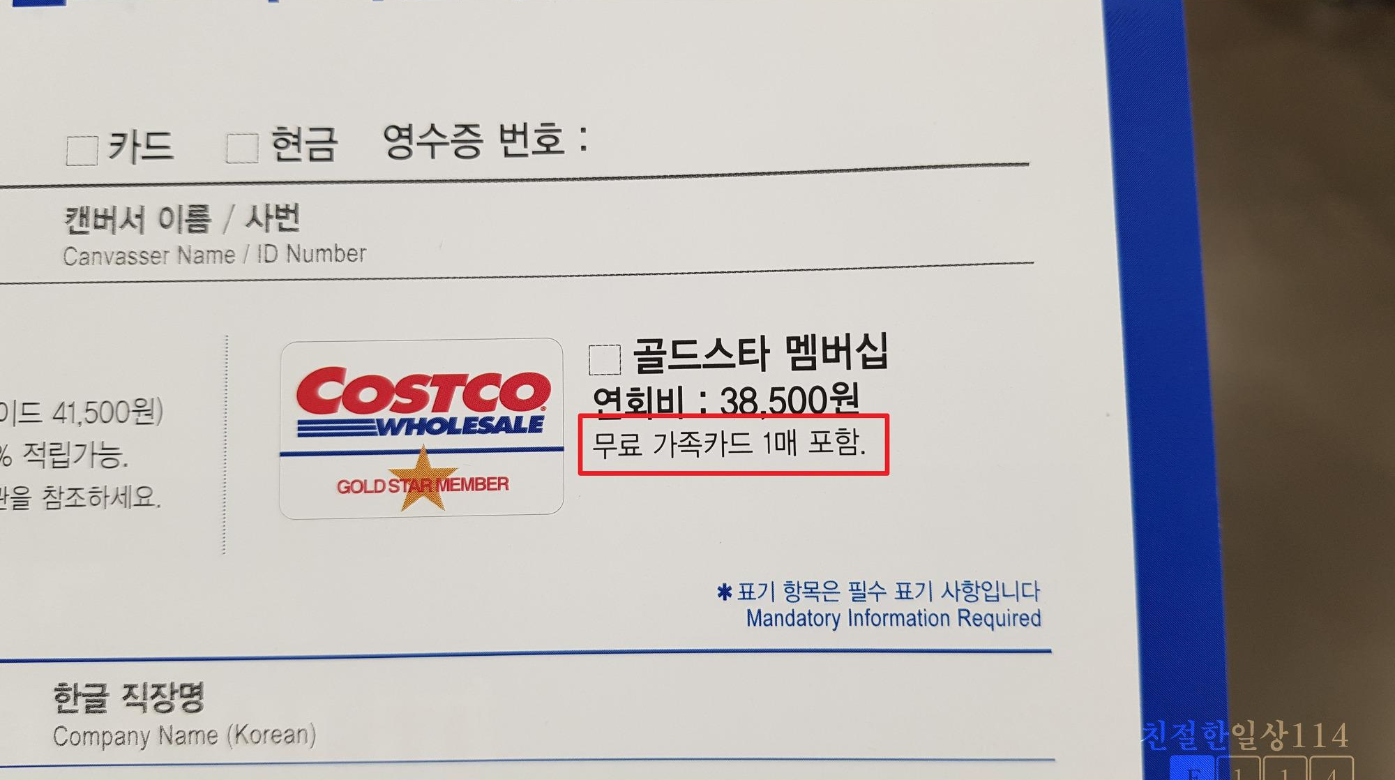 이번에 가입하려는 골드스타 멤버십에도 무료 가족카드 1매를 발급받을 수가 있다.