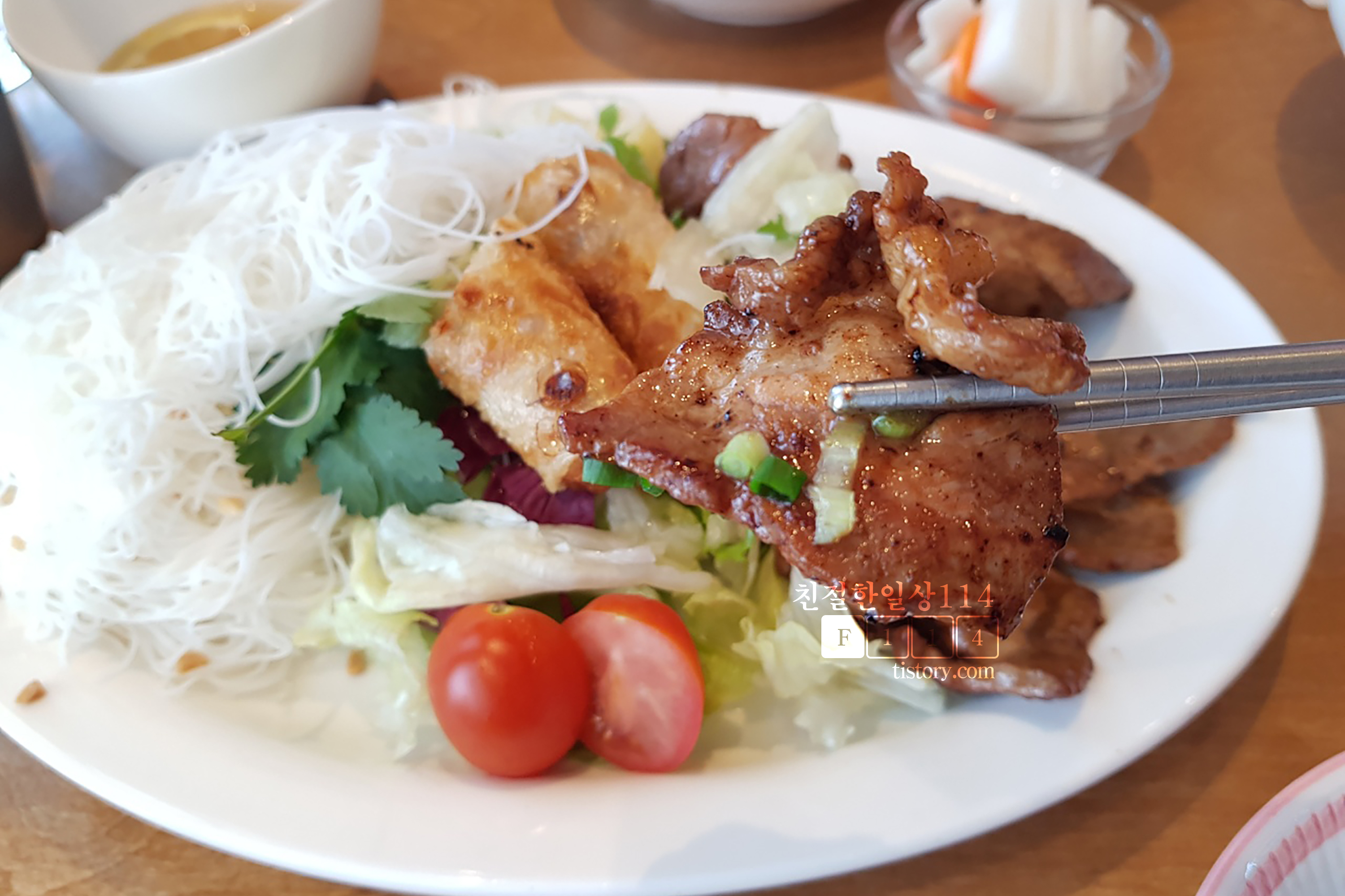 주문하고 3분인가 5분정도만에 음식이 나왔다. 기다리는 손님이 없어서 그럴 수도 있지만 빨리 나왔다. 소고기 쌀국수와 분짜에 있는 고기가 모두 불 맛 나도록 구워져서 나왔다.