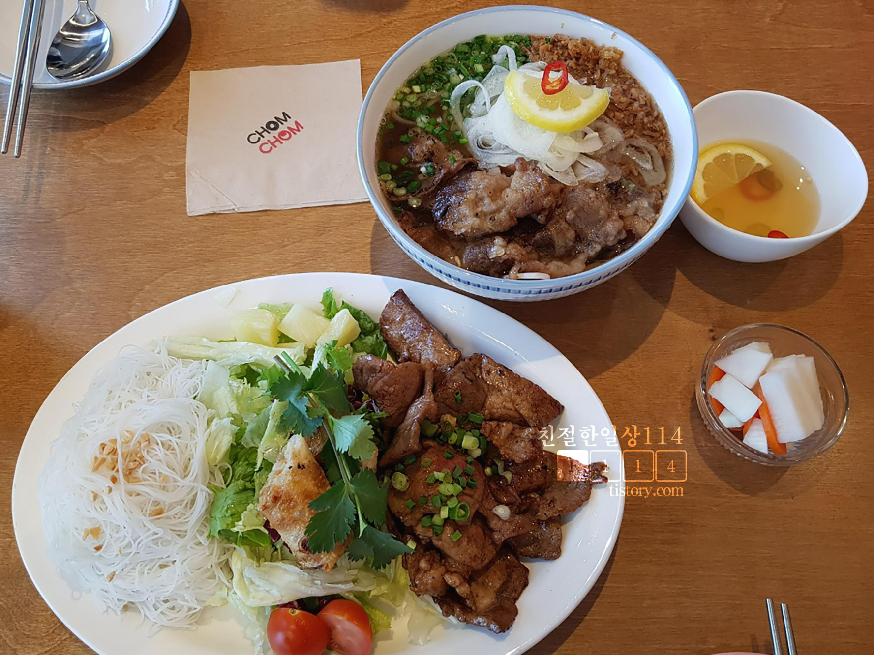 이번에 찾아간 아시안 펍 & 다이닝 식당 촘촘(CHOM CHOM)에서 쌀국수와 분짜를 주문해 먹어 보았다.