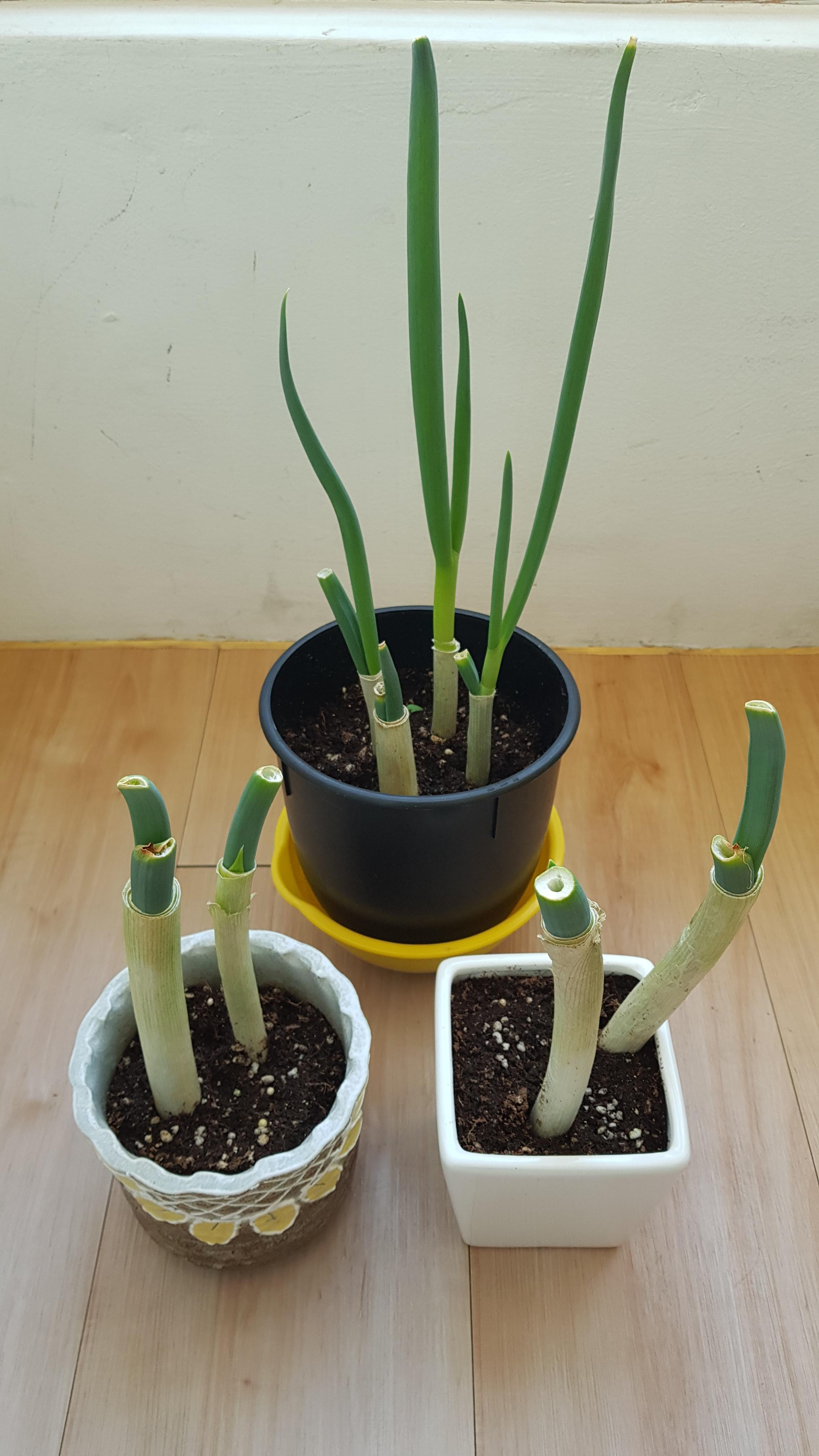 앞쪽에 화분에 있는 대파가 나중에 심은 파로 2일차에 접어들었고 뒤쪽 화분에 있는 대파는 먼저 심은 파로 10일차에 접어들었다.