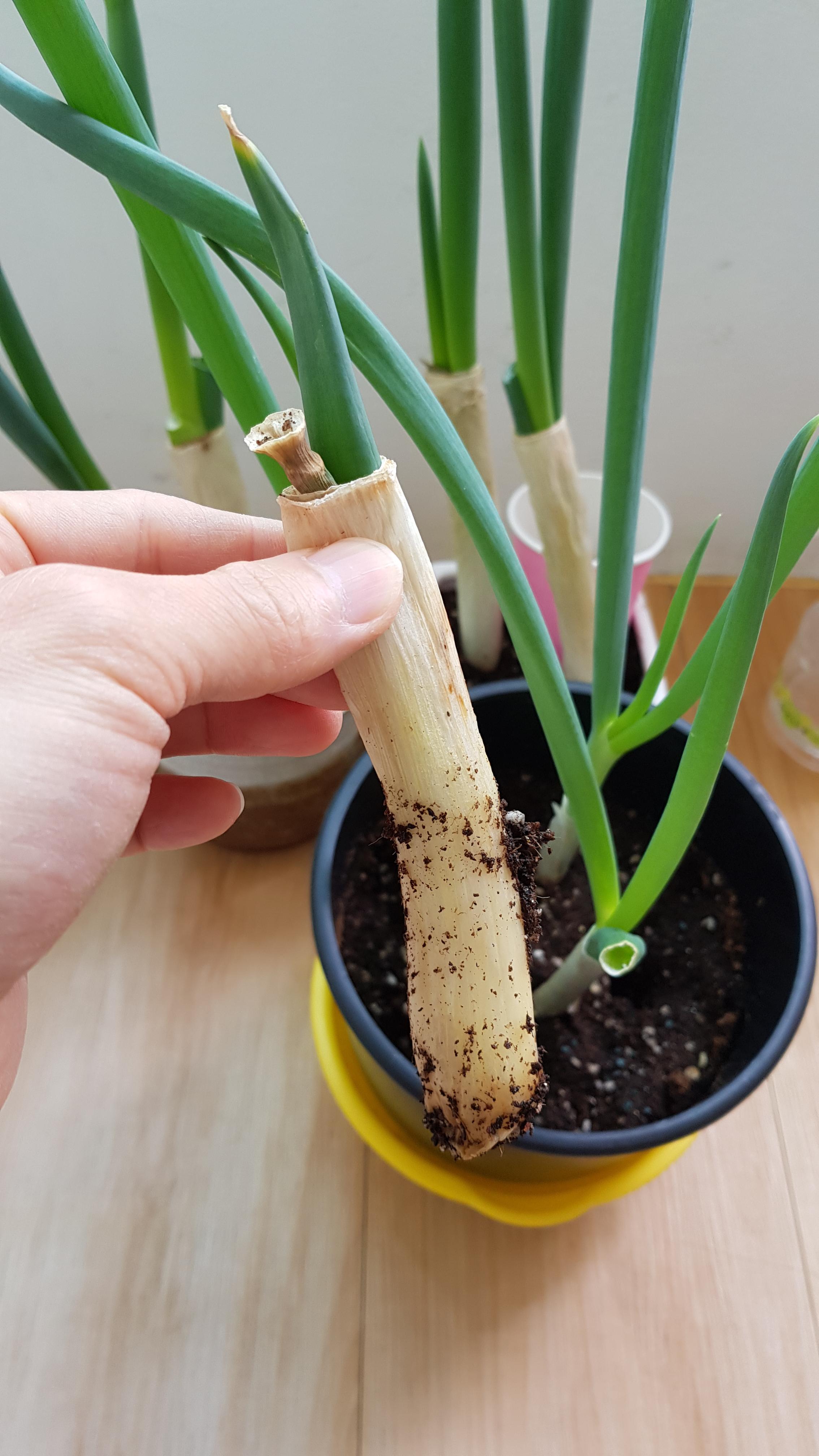 먼저 심은 대파는 키울생각없이 사와서 뿌리가 하나도 없는 상태였었다. 뿌리가 하나도 없어서 바로 죽지 않을까 싶었지만 뿌리가 새로나서 이렇게 나와있다.