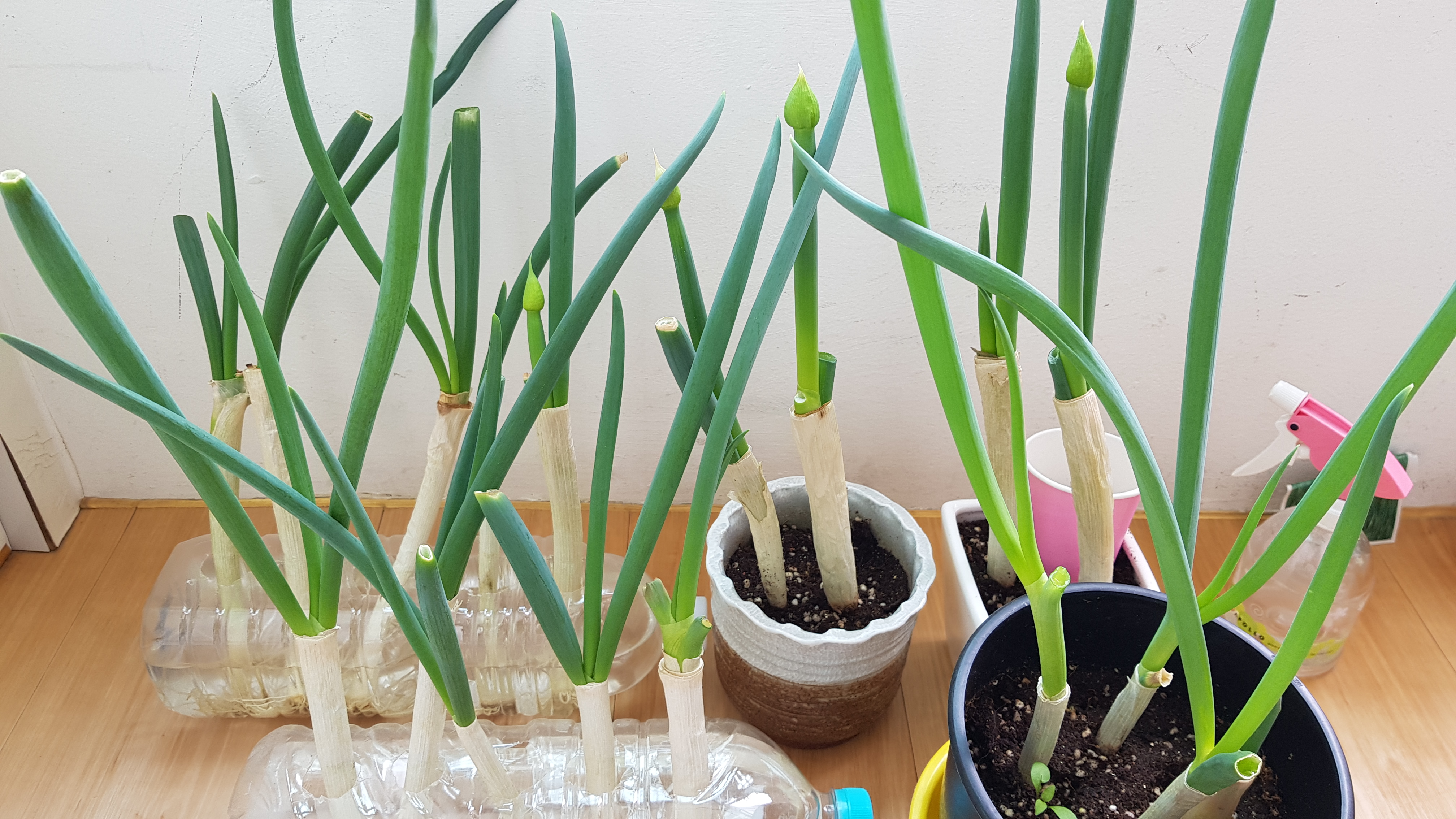페트병에 심은 수경재배 대파는 개중에 시들고 전체적으로 가늘게 자라서 대대적인 숙청에 들어갔다. 꽃대가 있는 것과 새로 돋아나 생기있는 것만 빼고 잡아먹기로 했다.