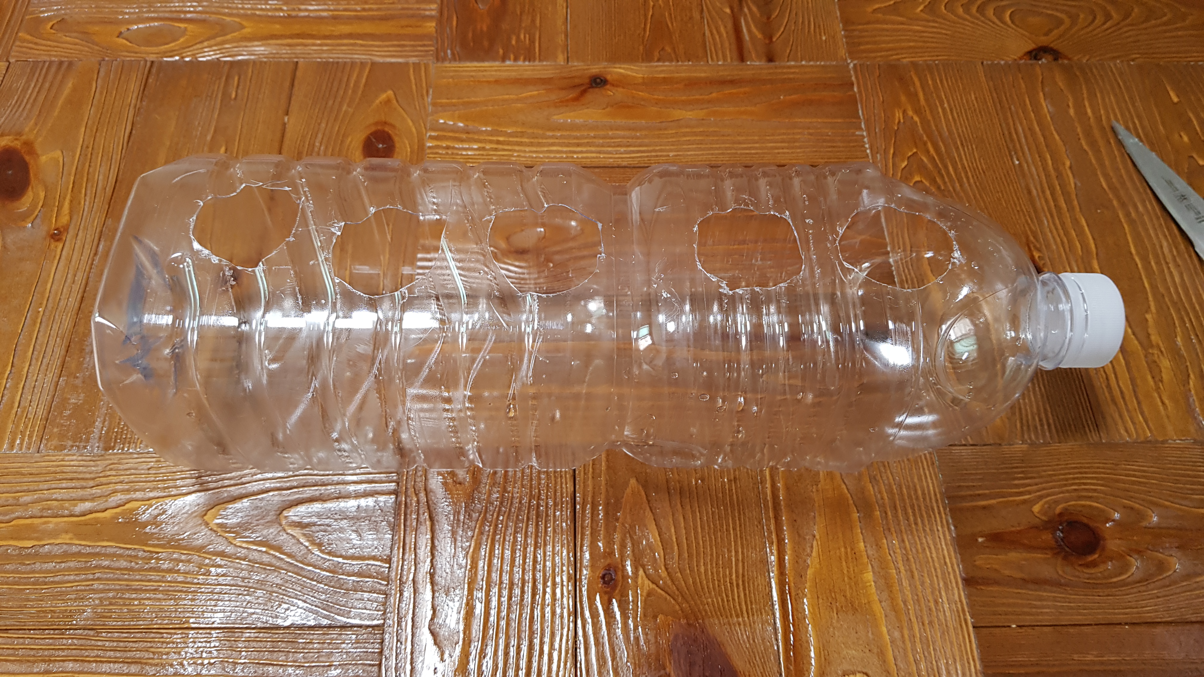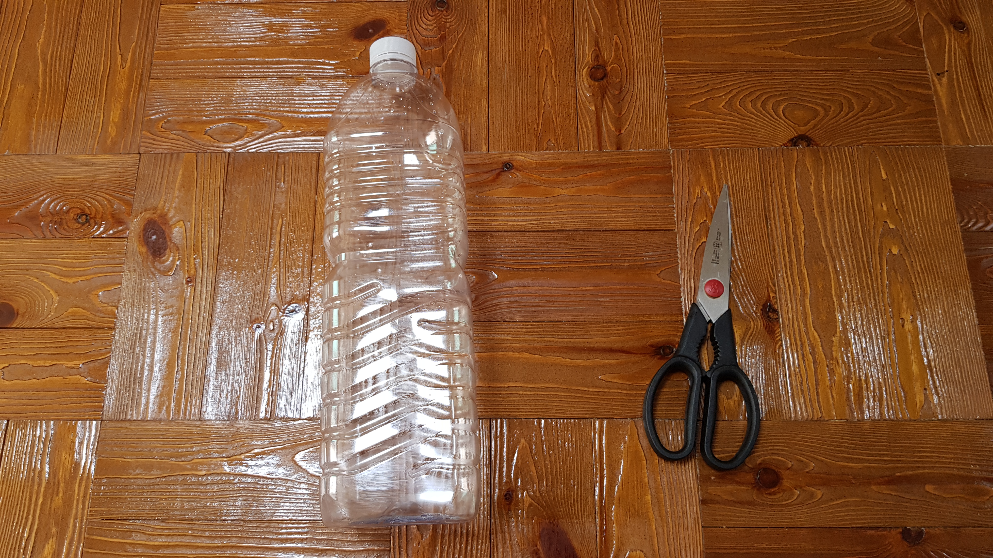 수경재배 중에서 가장 어려운 파트: 페트병에 가위로 구멍을 내기.
