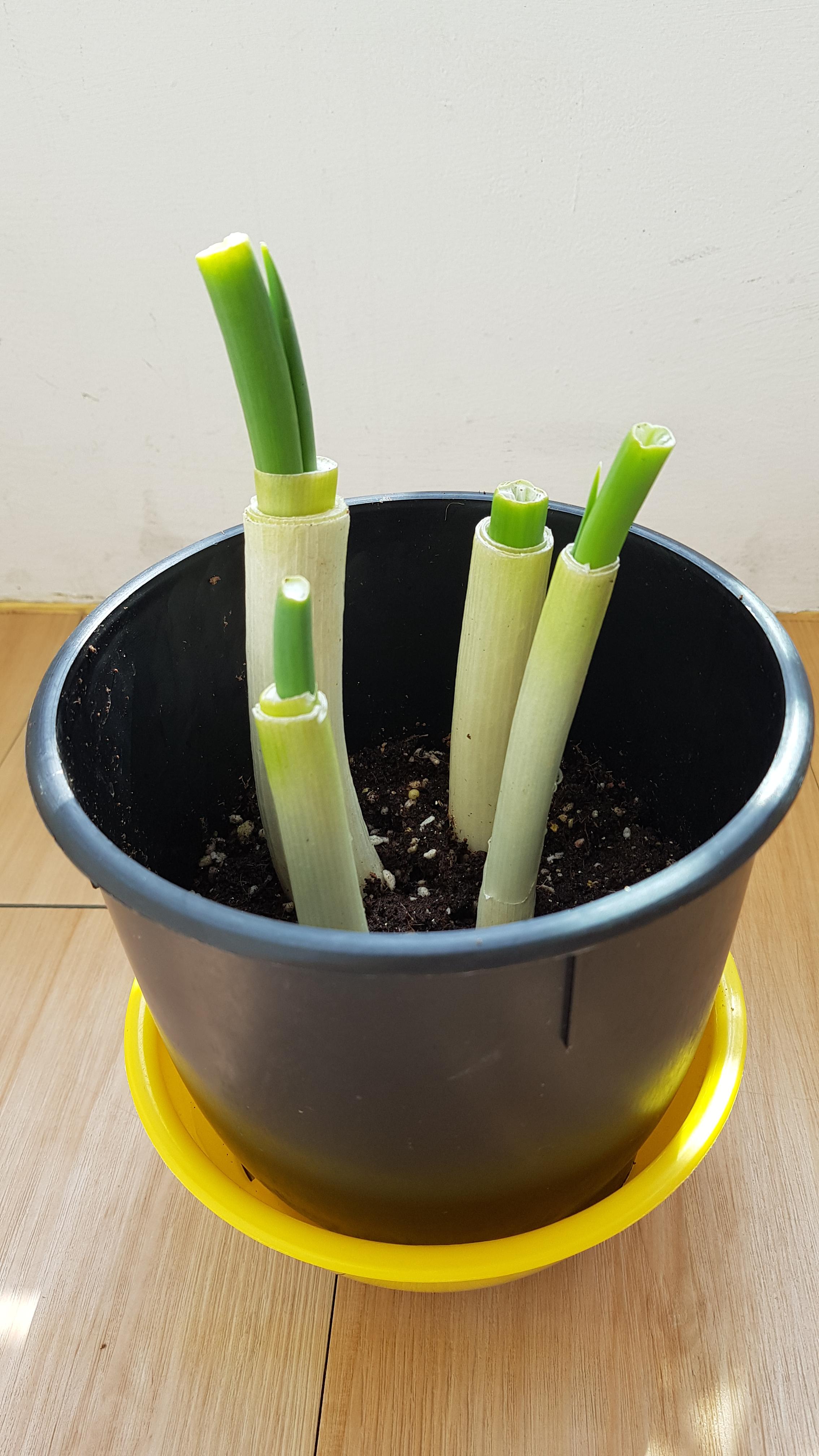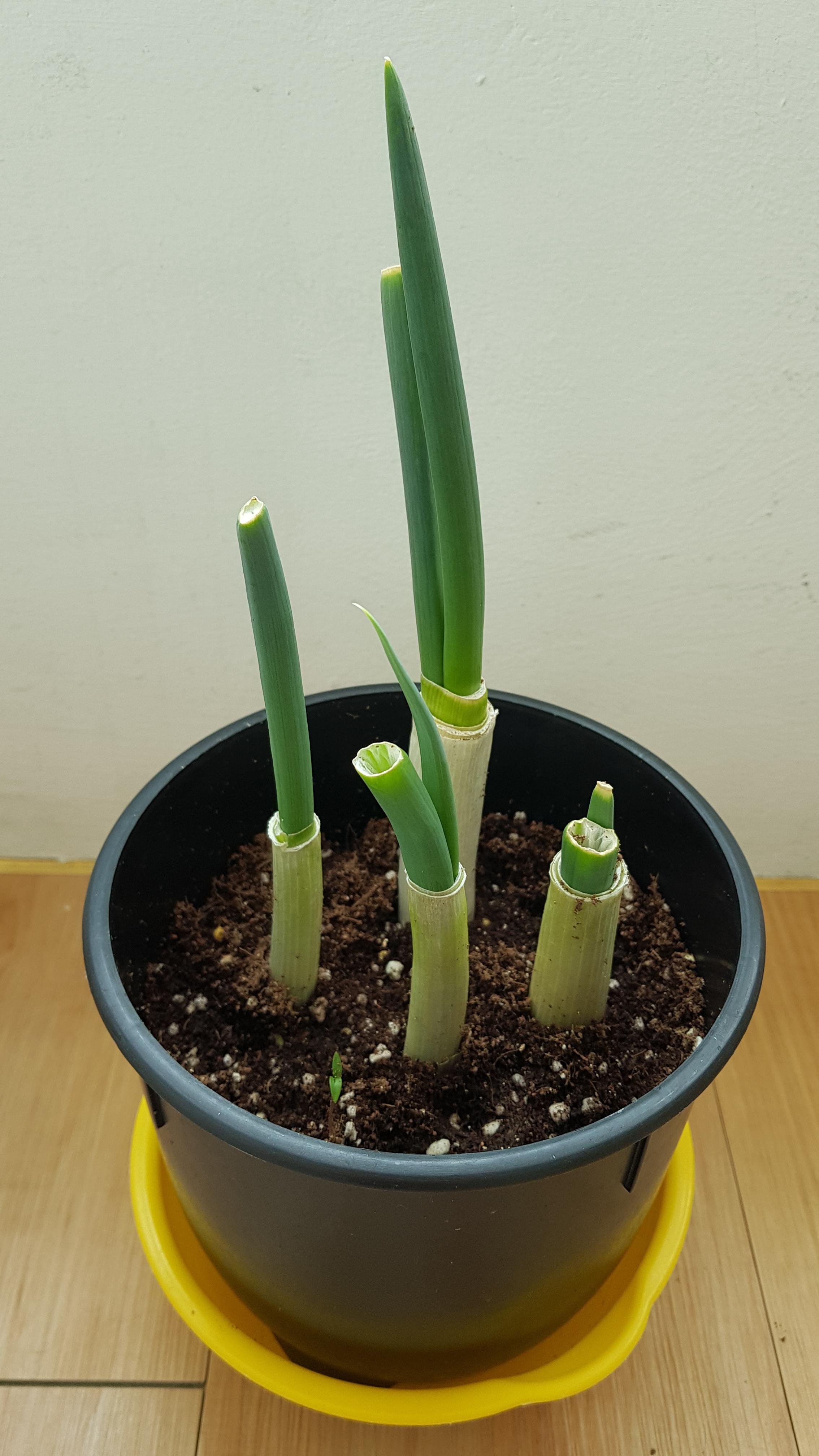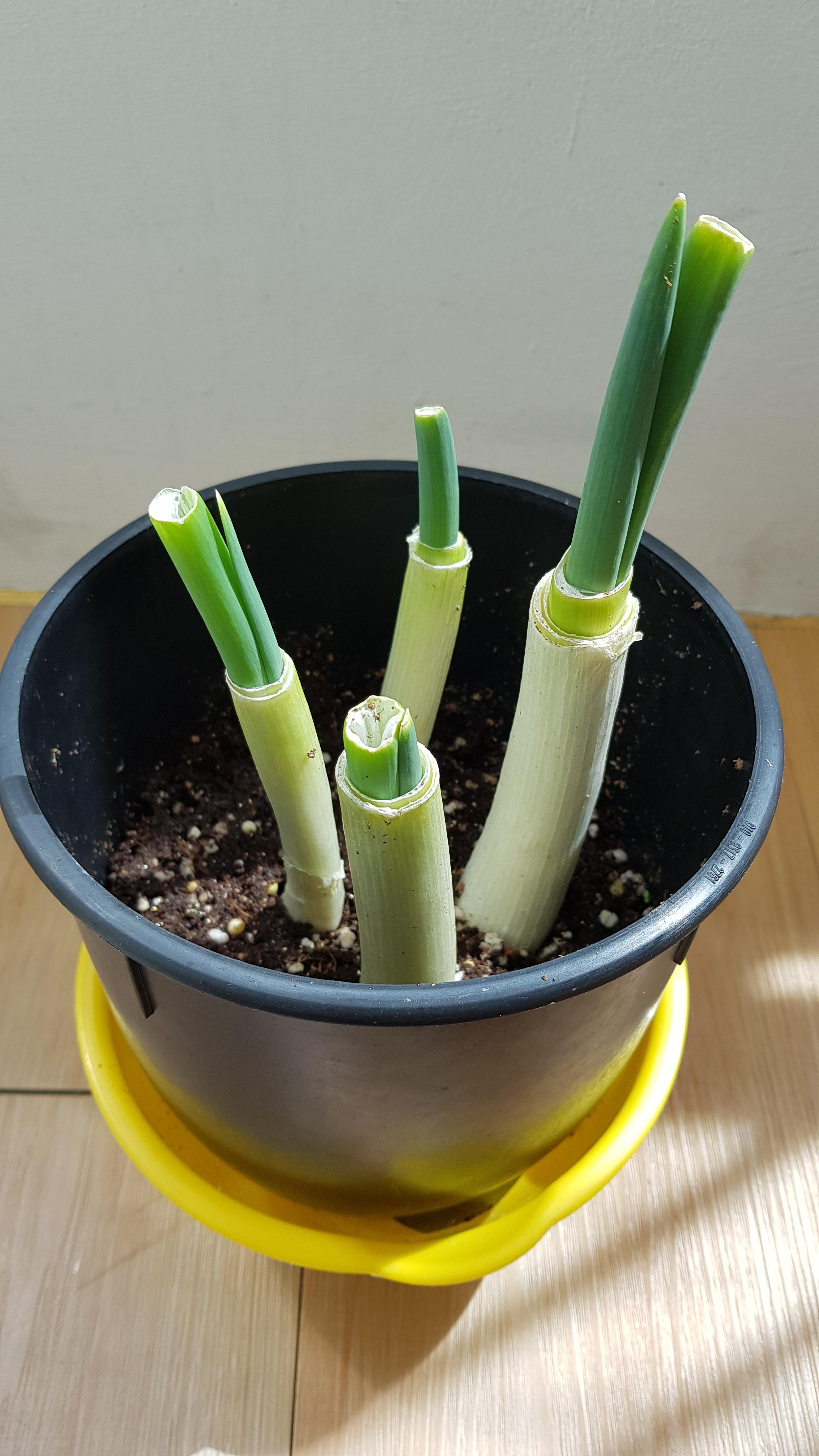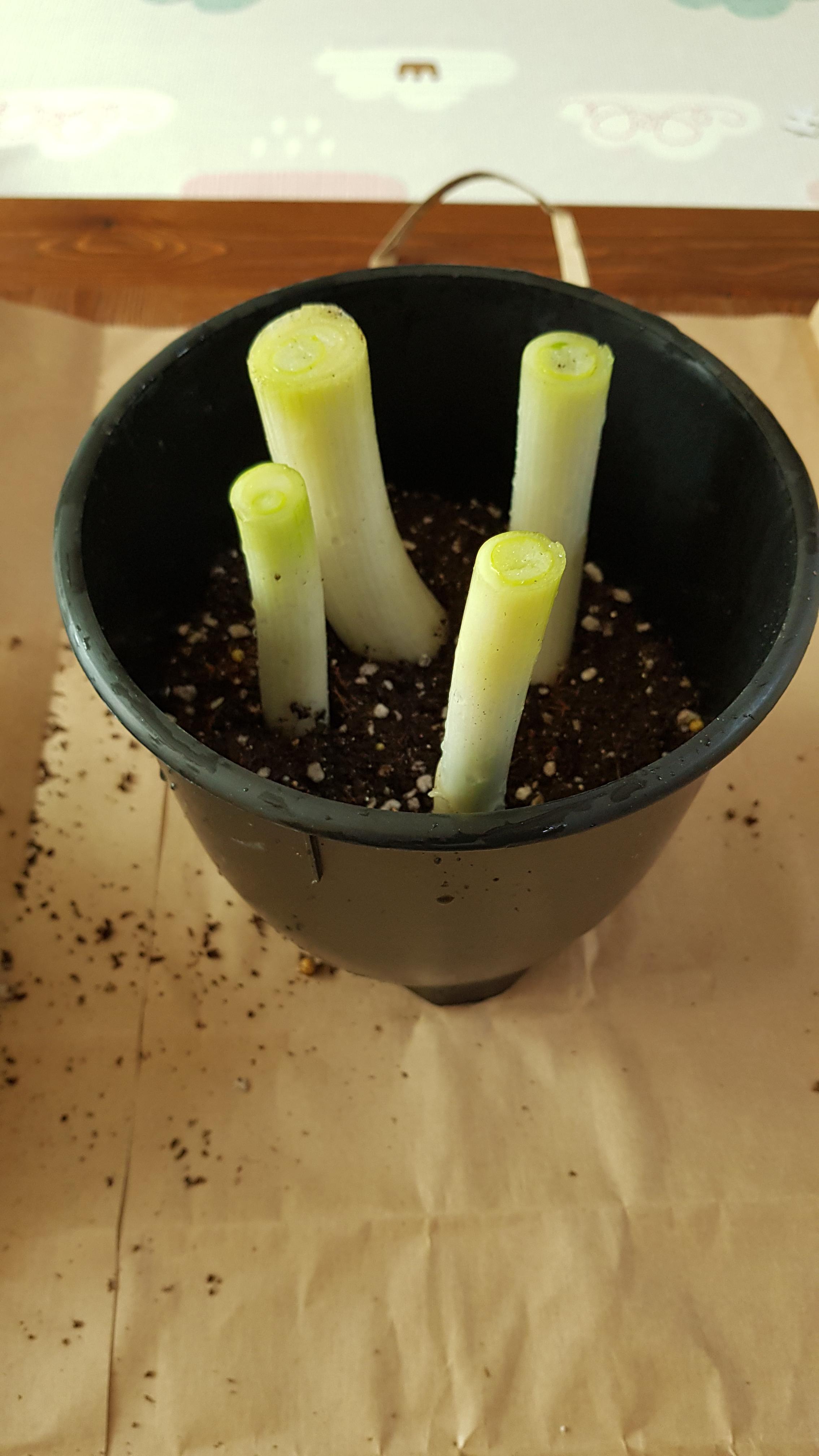 화분에 키운지 8일차의 대파 15cm가 자랐다.