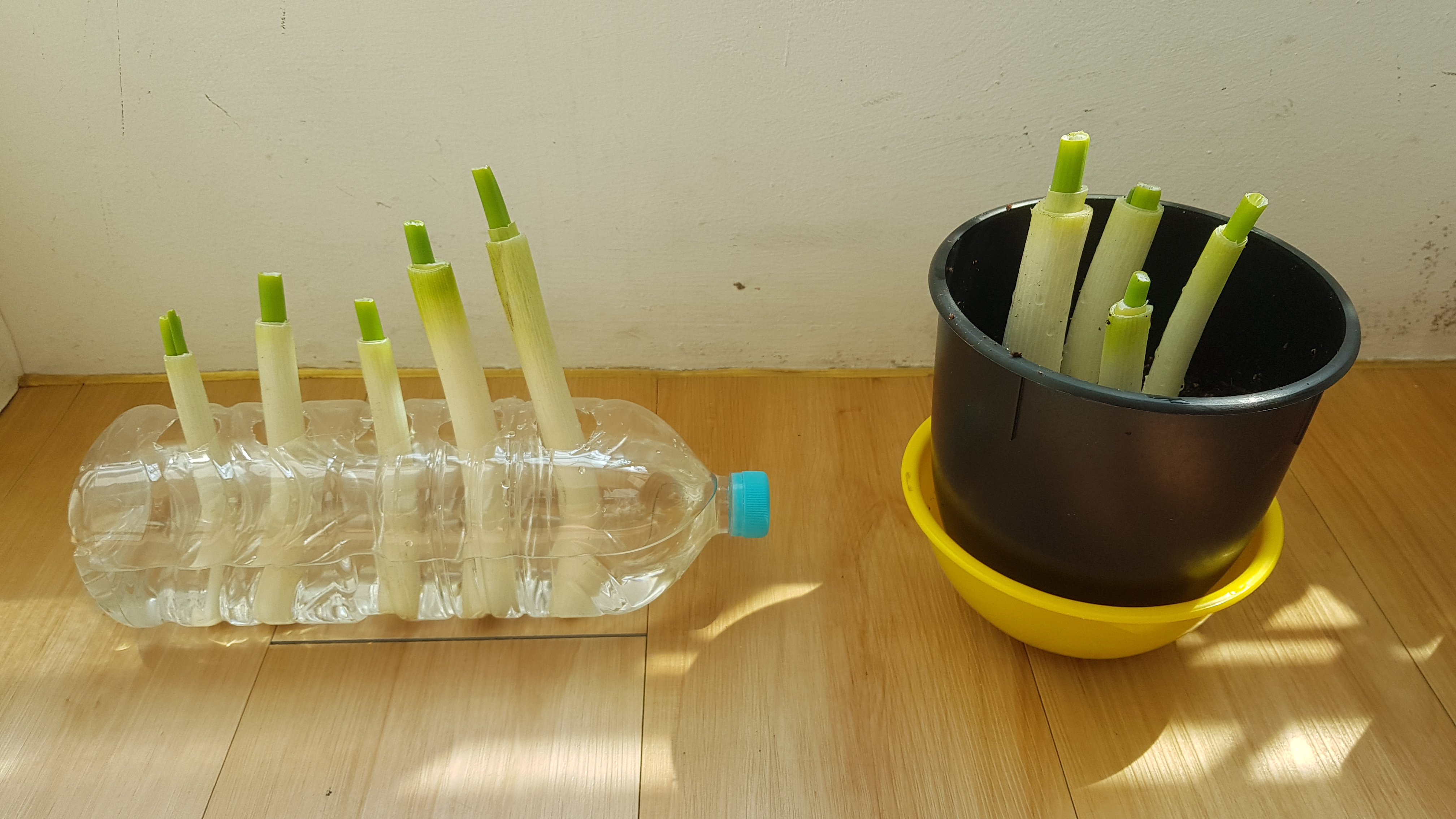 필자는 페트병의 물은 매일 갈아주었으며 화분에 물은 종이컵에 반씩 2틀에 한번 주었다. 흙속에 있는 영양분이 적어 이런 결과가 나왔을 수도 있을것이나, 필자가 생각하기로는 잔뿌리가 없는 파라서 영양분을 흡수하기가 물이 수월해서 이런 결과가 나온것같다. 그래도 화분과 물에 심어놓은 파들이 하루 1~2cm 씩은 자란것을 보면 자라는 환경은 문제 없어보이고 나름 잘 크고 있다.