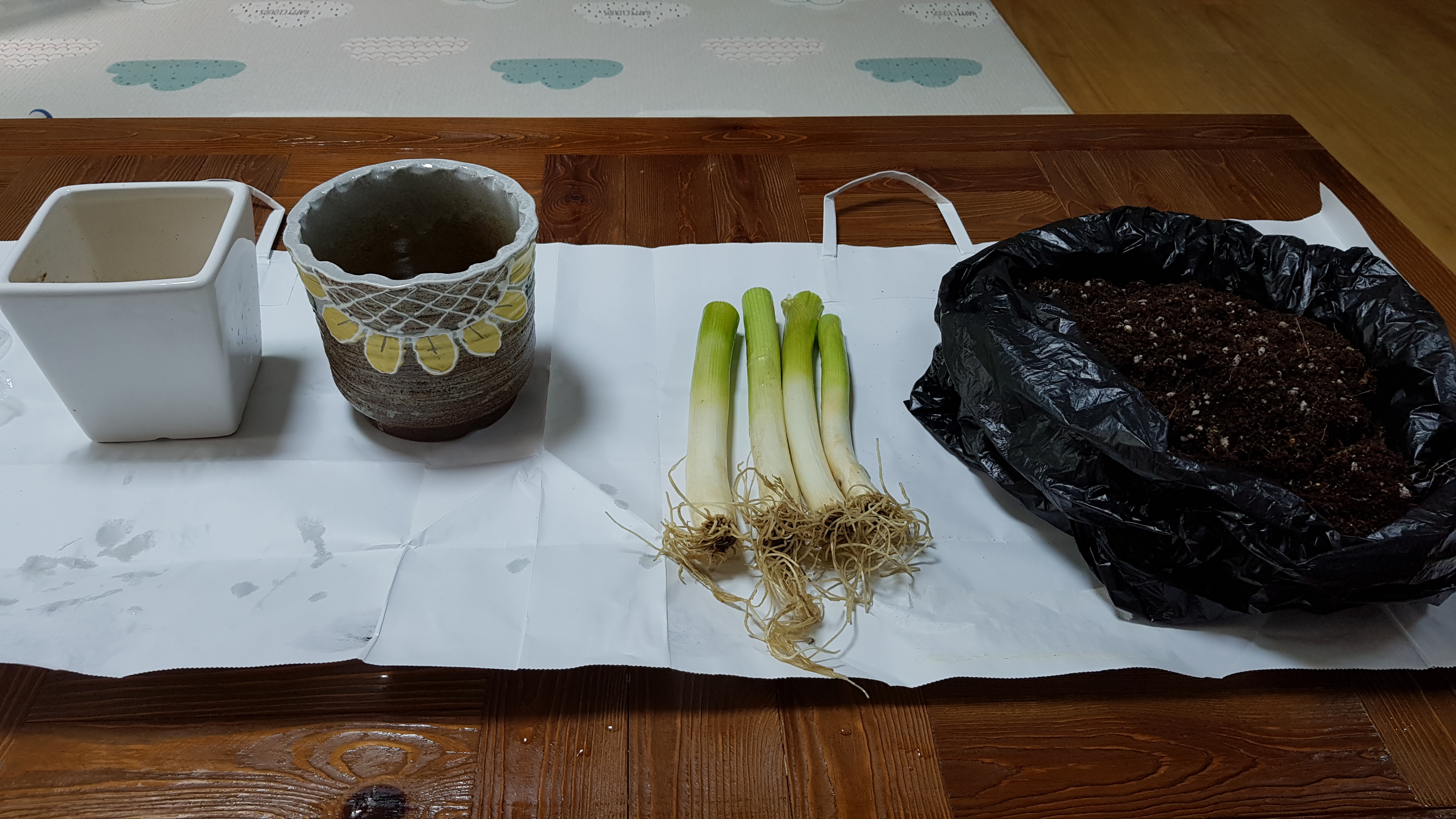화분과 양분이 많고 부드러운 흙, 마사토, 파뿌리 이렇게 있으면 된다.