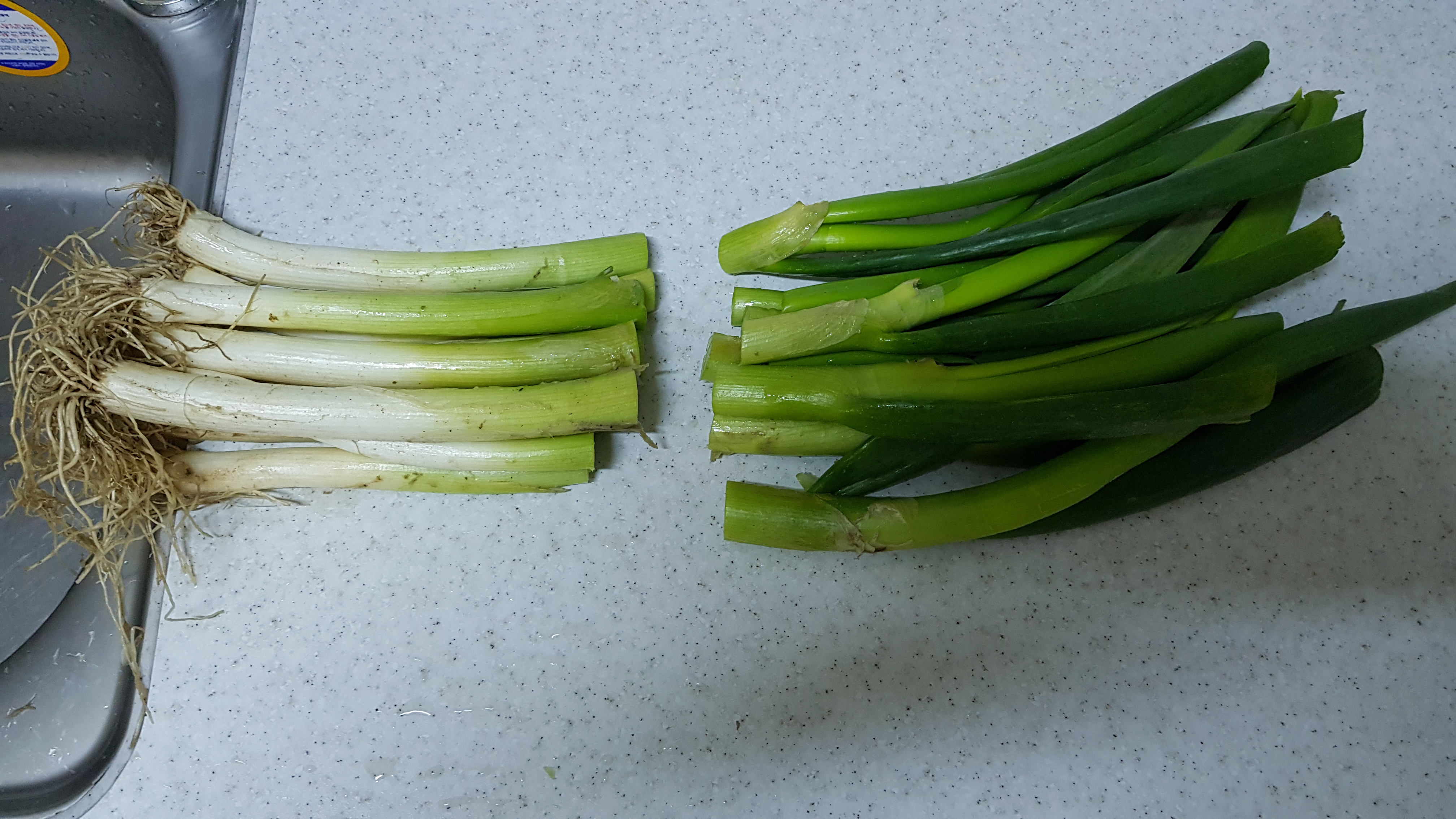 8일전에 사다 놓은 대파는 다 먹었다. 집에서 키우고 있는 대파는 아직 잡아 먹을 정도로 안컸기에 다시 장을 봐왔다. 전에 대파를 살때는 키울 생각이 없어서 뿌리를 안봤었는데 이번에는 일부러 뿌리가 많은 파를 골라서 샀다.