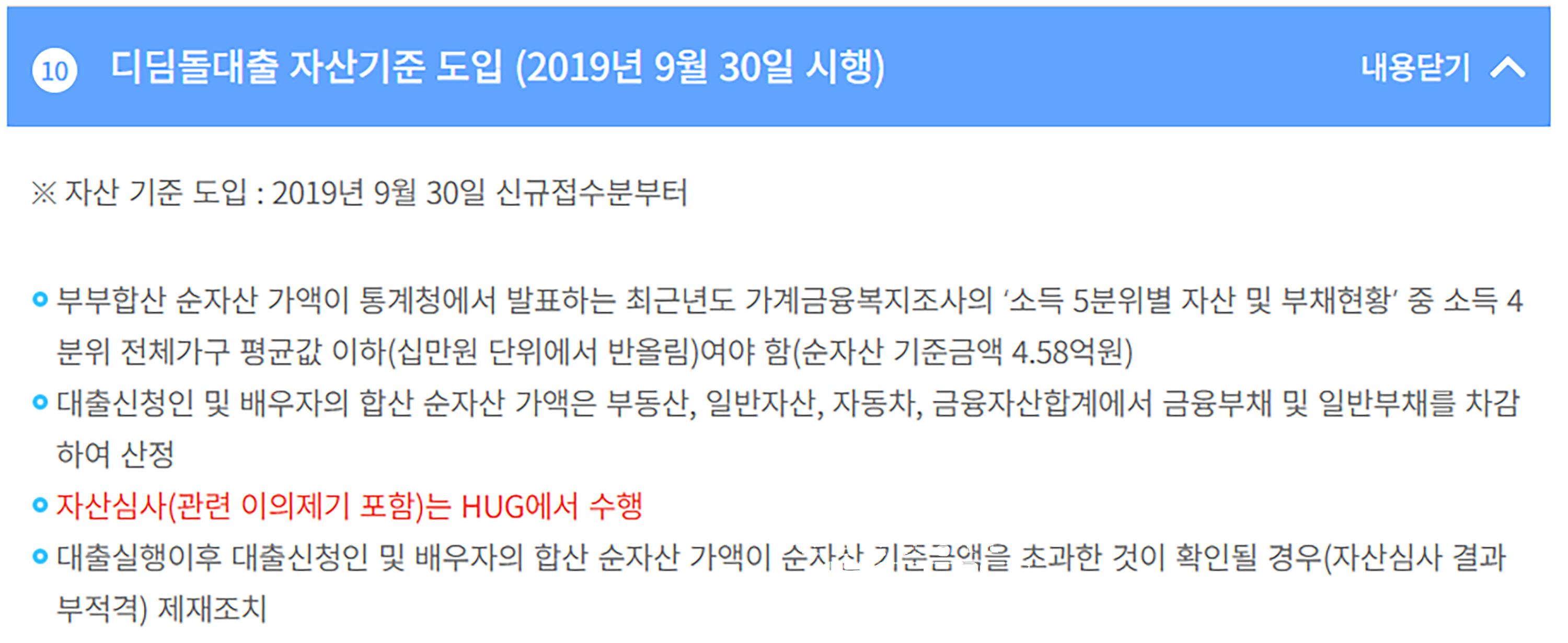- 자산심사는 HUG에서 수행