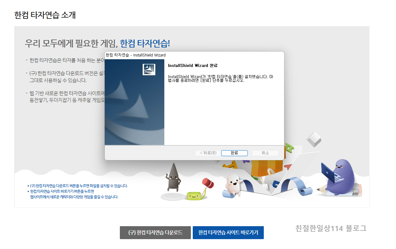 필자는 방법1번인 한컴 타자연습 프로그램을 다운로드 받은 후 설치해서 사용하고 있다. 아래는 프로그램 다운로드와 설치 그리고 사용화면까지 소개해 보도록 하겠다.