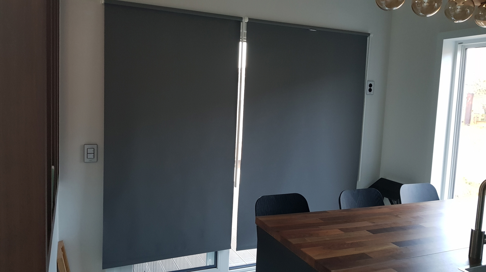 거실에만 전동 블라인드를 하고 나머지 공간에는 이케아의 수동 암막 블라인드를 설치한다.