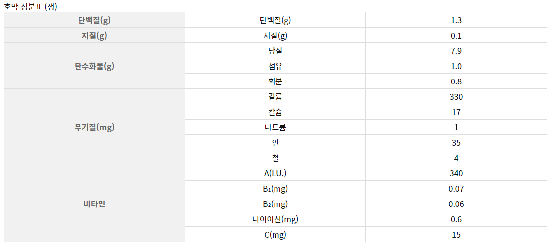 출처: 호박의 특성 영양학적 가치 | 농사로 (nongsaro.go.kr)