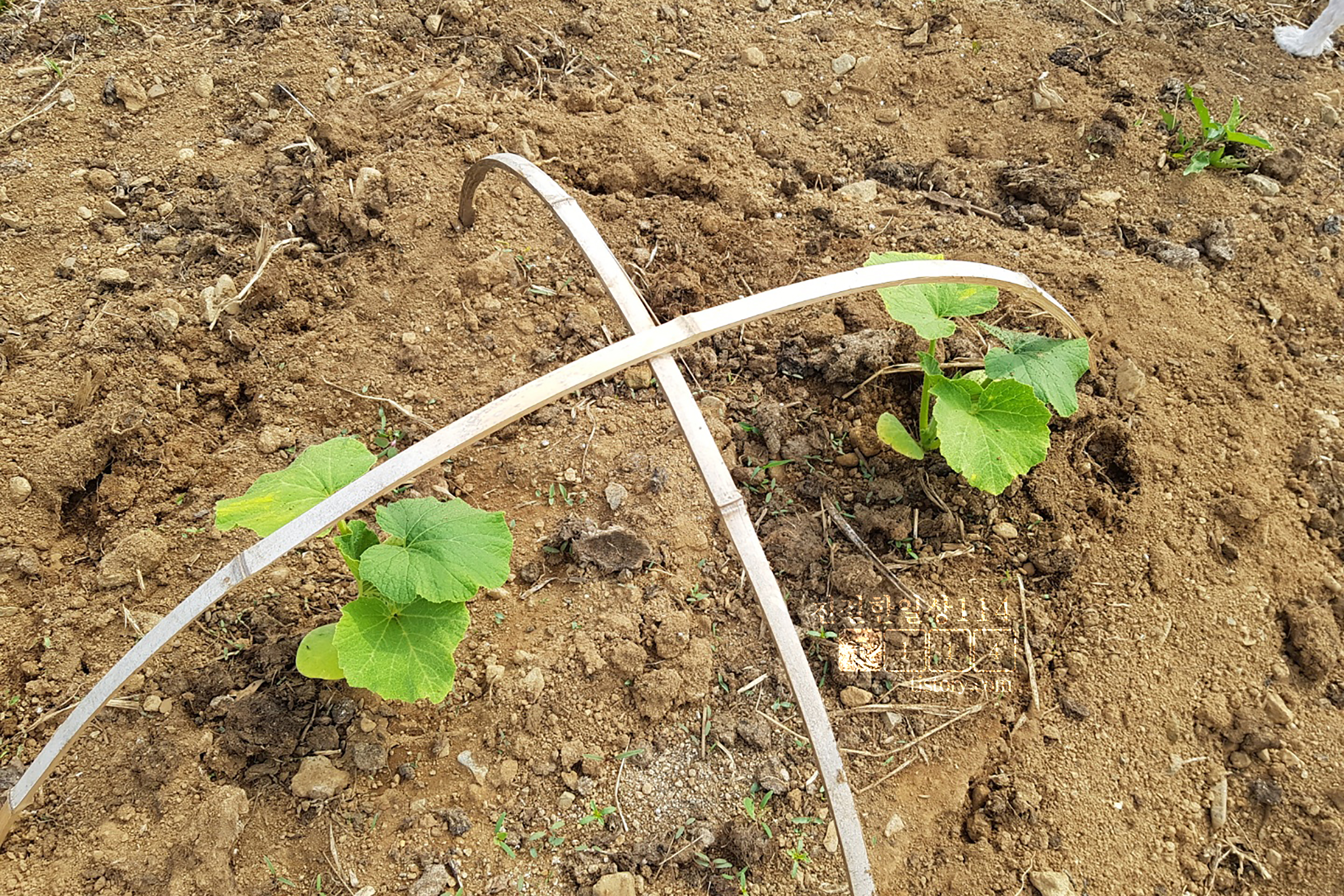 호박 구덩이를 파서 키우고 있다. 직접 키우고 있다고 하지만 경험과 지식이 없기에 노하우가 많은 이웃집 할아버지와 자연이 돌보며 키워지고 있는 중이다.