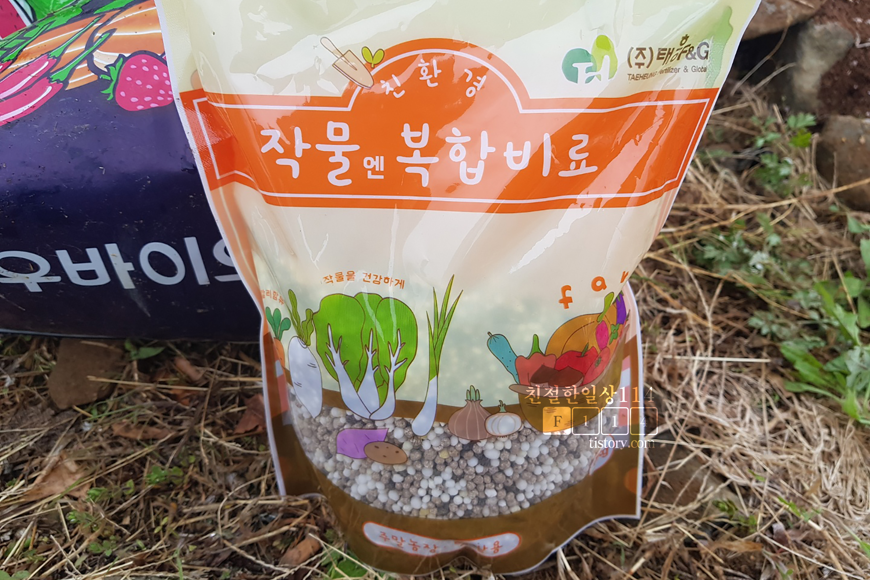 호박을 키우기 위한 구덩이를 파려고 삽을 준비했고 구덩이에 흙과 섞을 거름과 위에 뿌릴 복합비료를 사왔다.