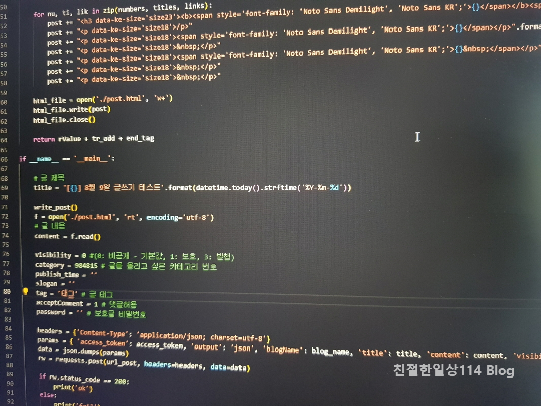 티스토리 API에서 토큰을 받고 간단한 글을 작성하는데까지 성공했지만 내가 발취한 정보를 보기 좋게 올리는 것에서 막힌다.
