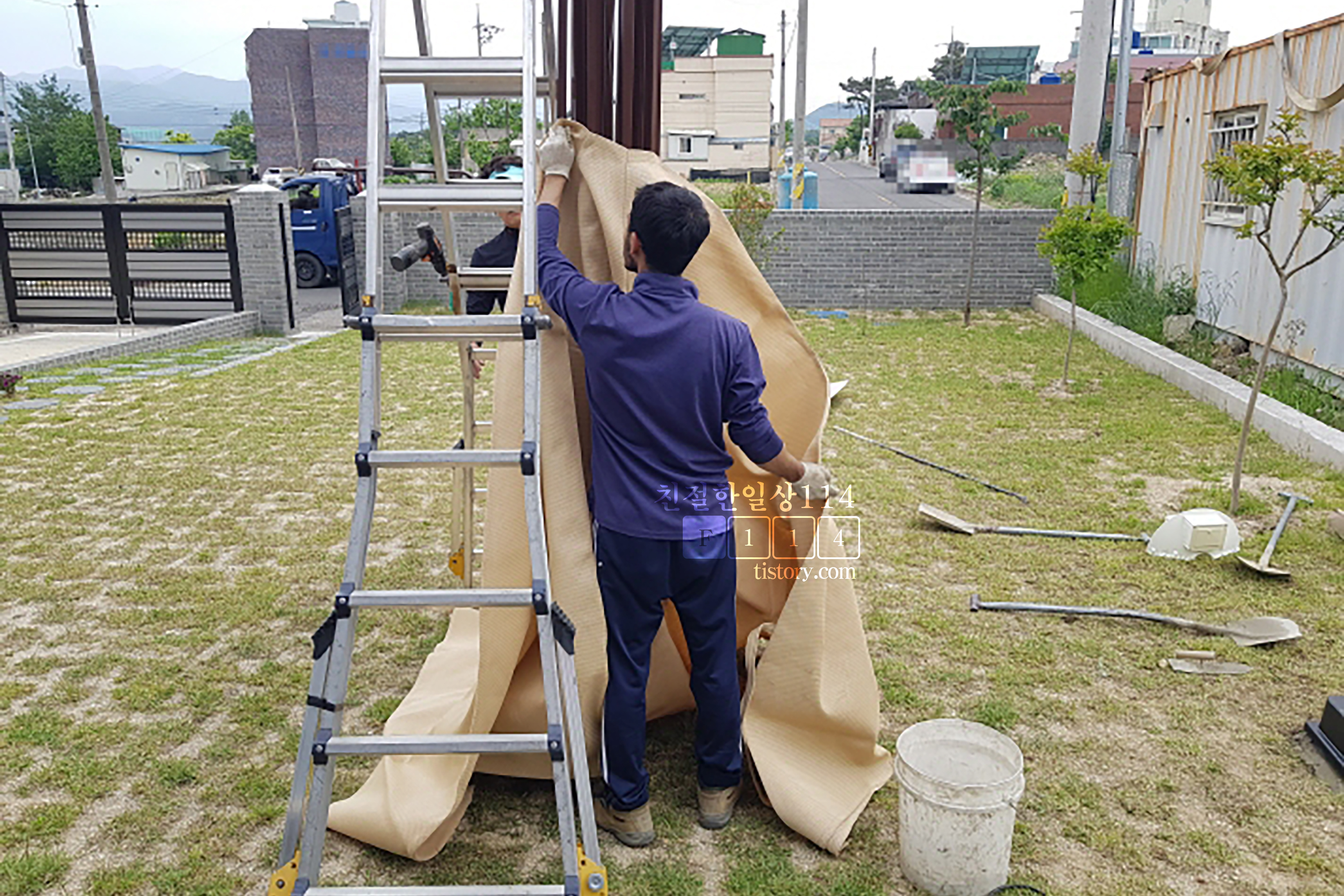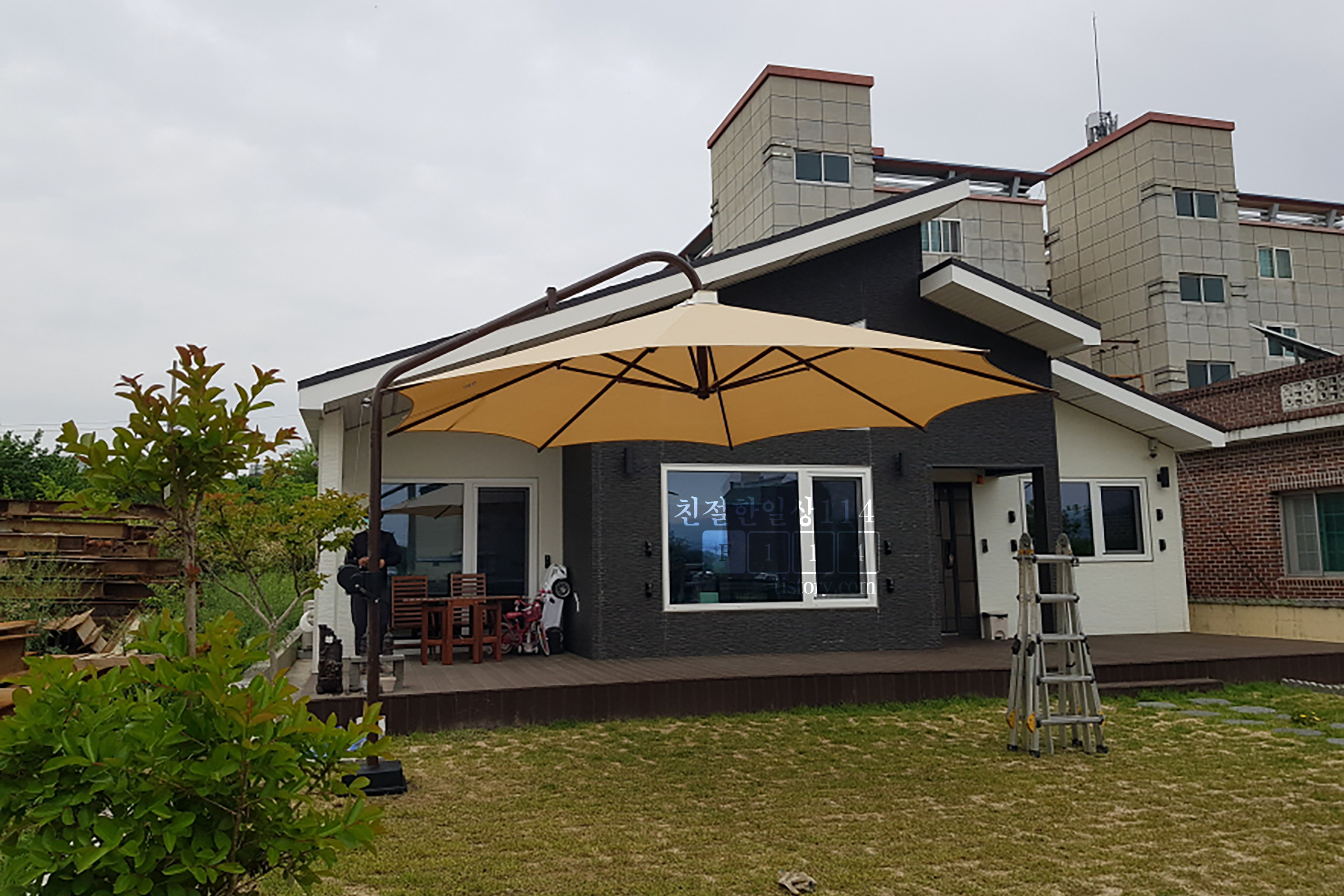 잠시 후 대형 파라솔을 실은 1톤 트럭이 집앞에 도착했다.
