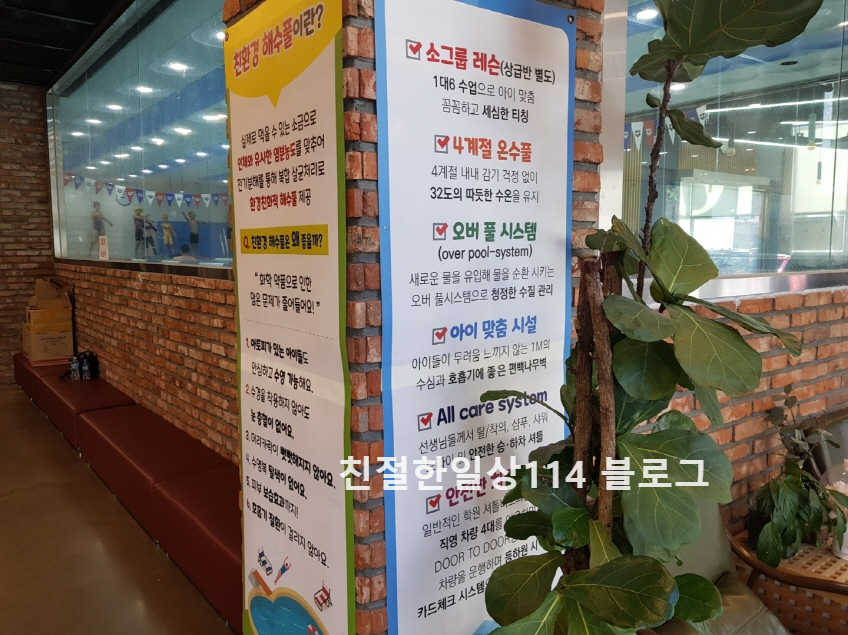 집 딸아이는 7살로 초등학교 입학전이지만 어차피 배울거라면 조금이라도 미리 배워서 물에 익숙해지고 물에 뜨는 방법이라도 배울 겸 어린이 전용수영장을 찾아 등록하게 되었다.