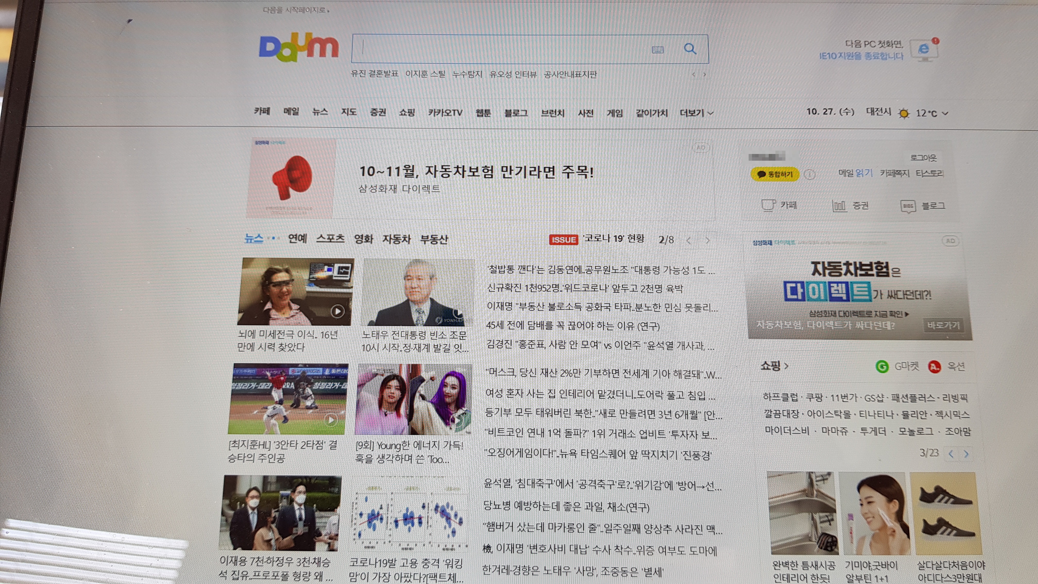인터넷 홈 화면으로 설정해 놓은 다음이 보여진다. 연결이 잘 되었다.