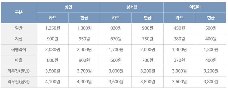 울산에서 운행중인 시내, 좌석, 마을 리무진 버스 요금표를 아래에 기재해 둔다.