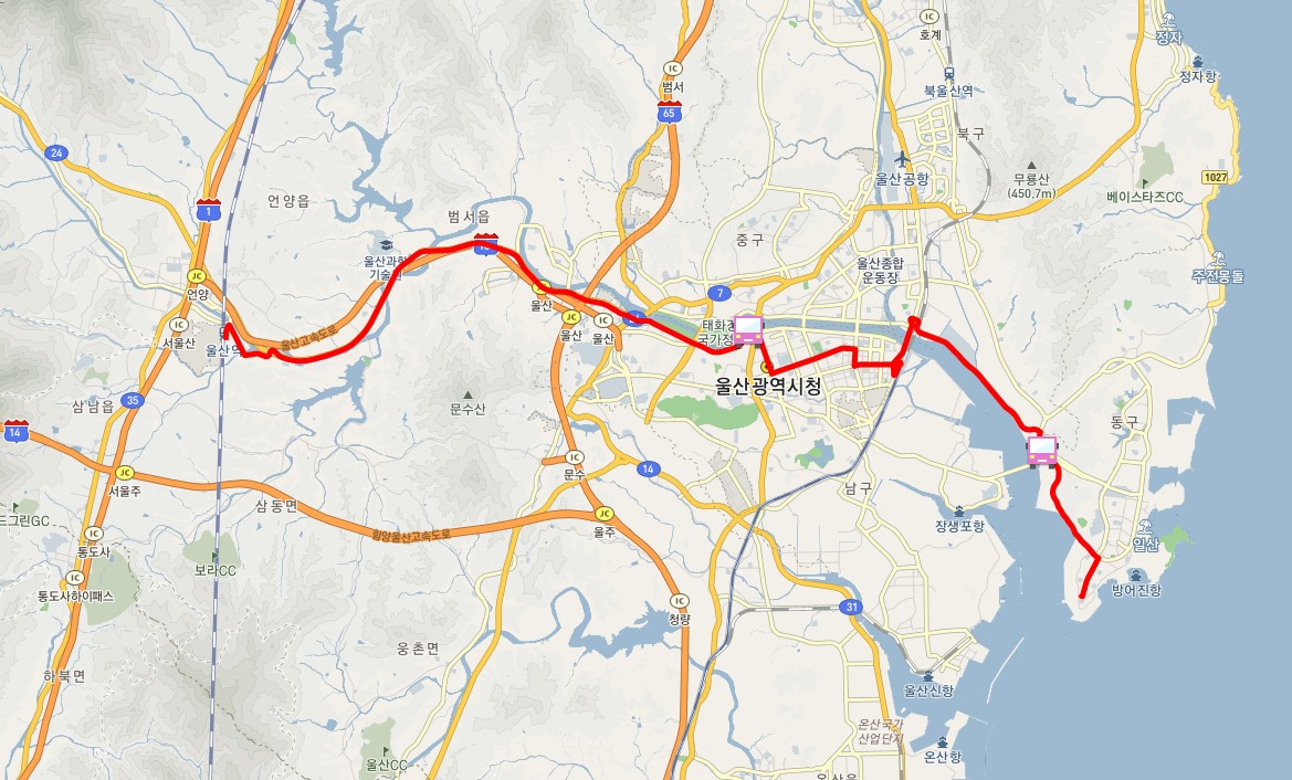 이번엔 울산역 KTX역과 울산시내를, 그리고 양산시외터미널까지 빠르게 연결해주는 리무진 버스(5001, 5002, 5003, 5004, 5005, 3000) 노선과 정류장을 보기 쉽게 정리해 보았다.