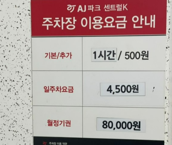 ㅣ민영 AJ파크 센트럴 K 주차장 (1일 4,500원)