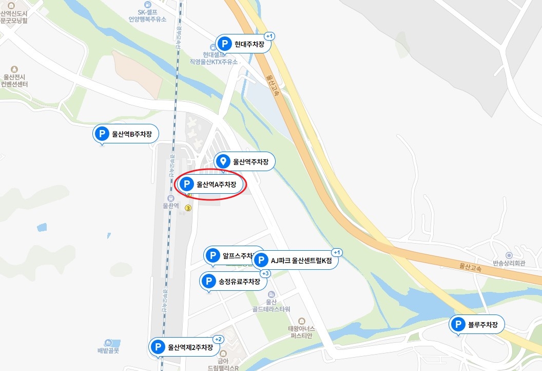 아래는 울산역 주변 주차장별 위치이다.